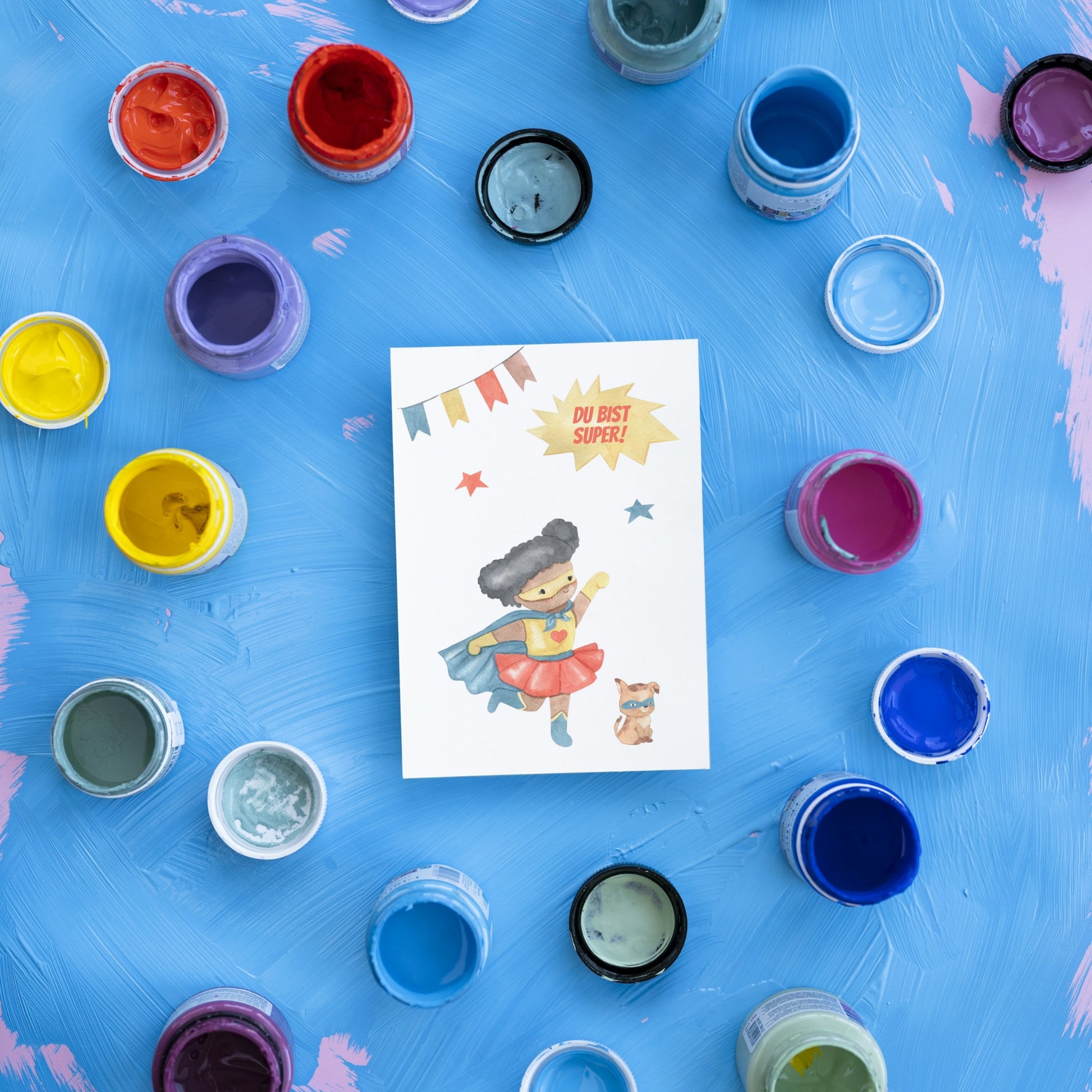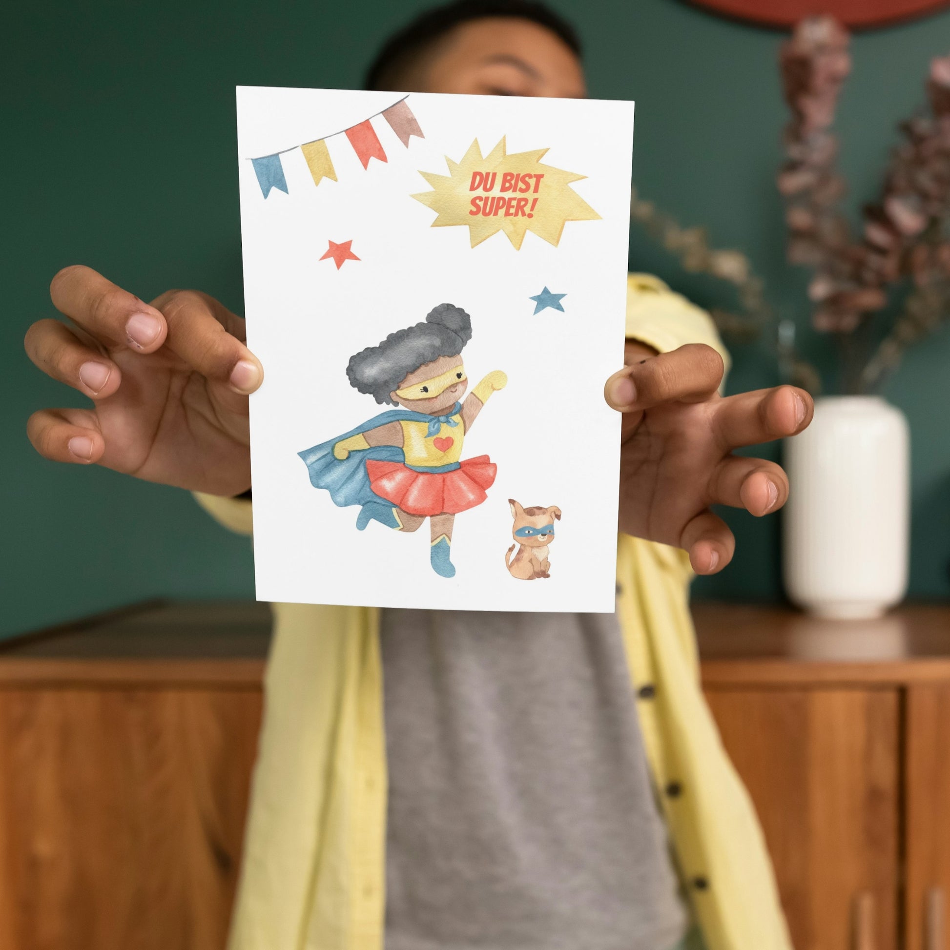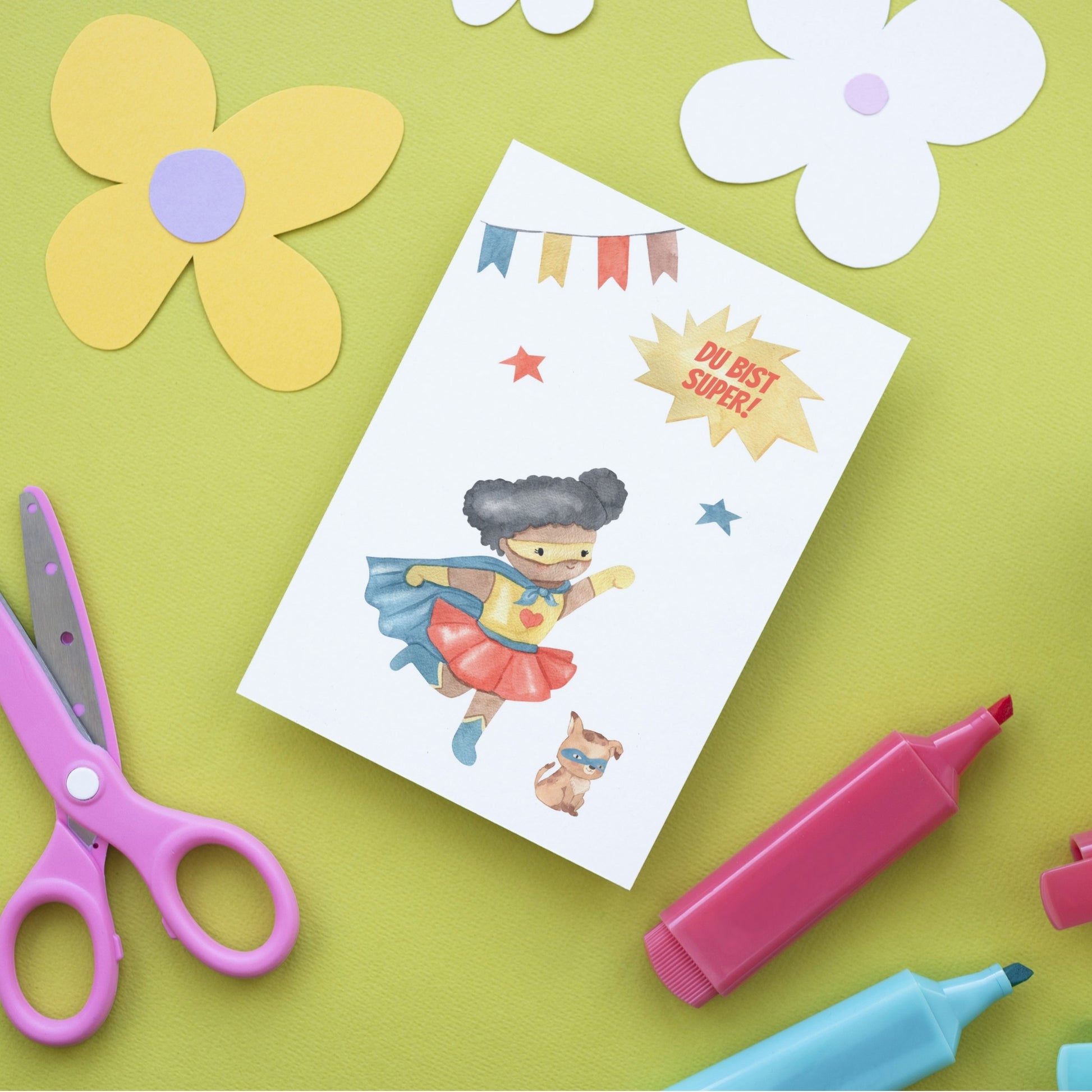 Diese liebevoll gestaltete Supergirl Postkarte ist perfekt als Glückwunschkarte zum Geburtstag, zur Motivation, zur Aufmunterung oder für liebe Grüße.