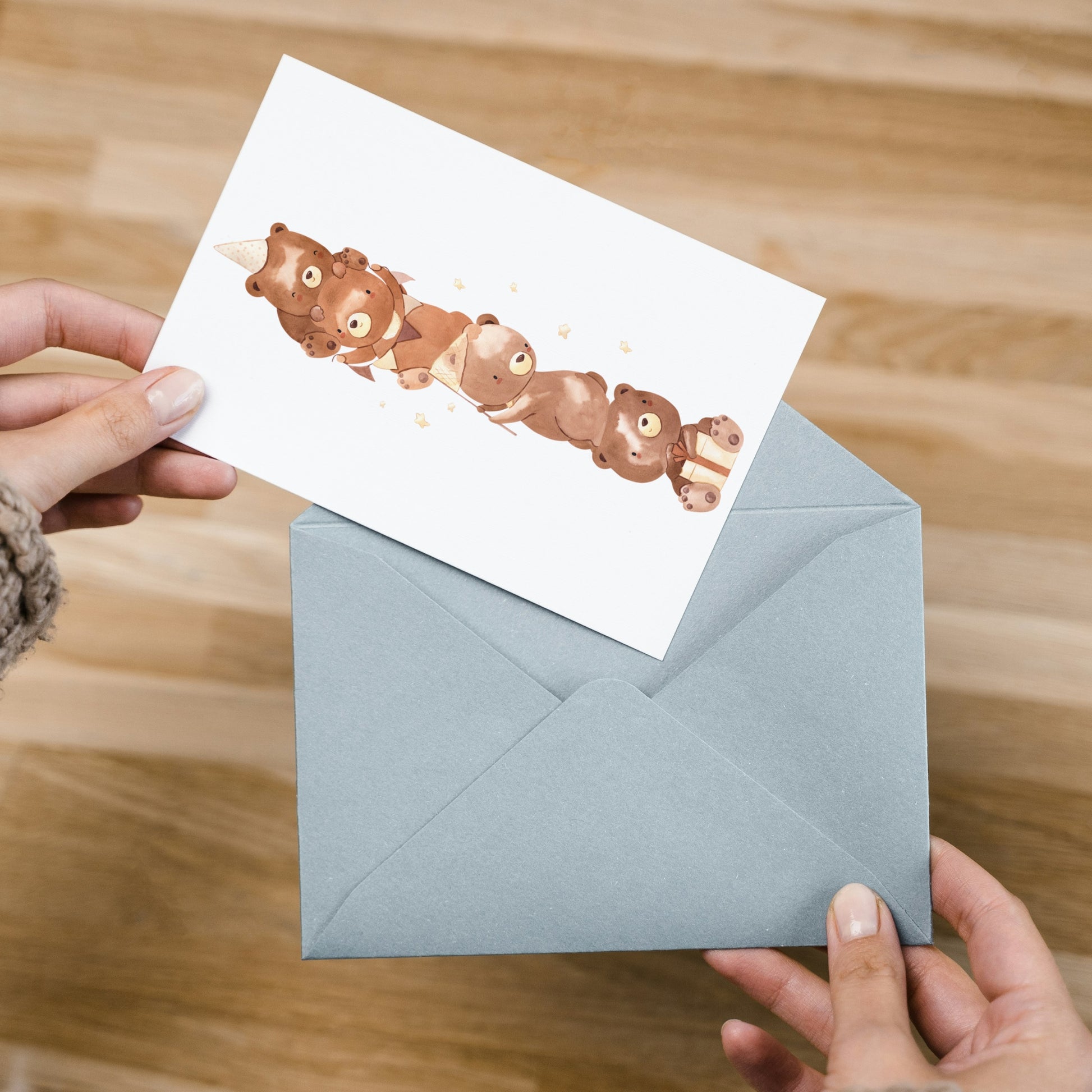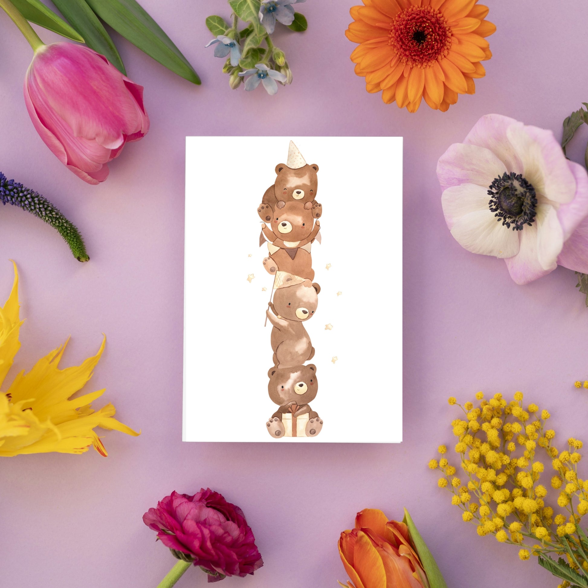 Diese liebevoll gestaltete Geburtstagskarte für Kinder mit niedlichen Bären zaubert garantiert ein Lächeln auf jedes Gesicht. Diese handgefertigte Karte ist als Glückwunschkarte oder Einladung zum Kindergeburtstag perfekt für kleine Geburtstagsstars, die Bären lieben!
