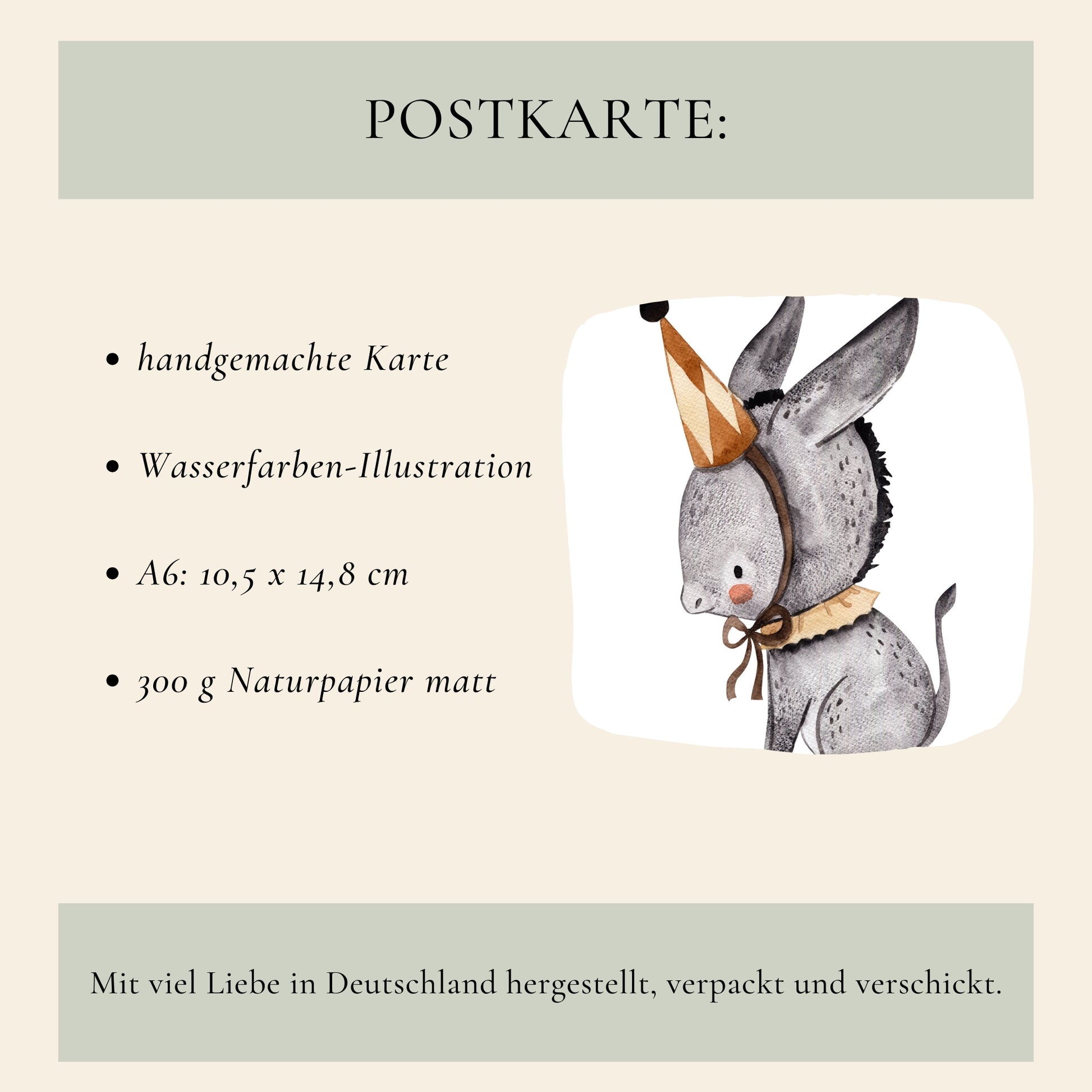 Größe A6: 10,5 x 14,8 cm (300 g unbeschichtetes Naturpapier matt) - normale Postkartengröße.