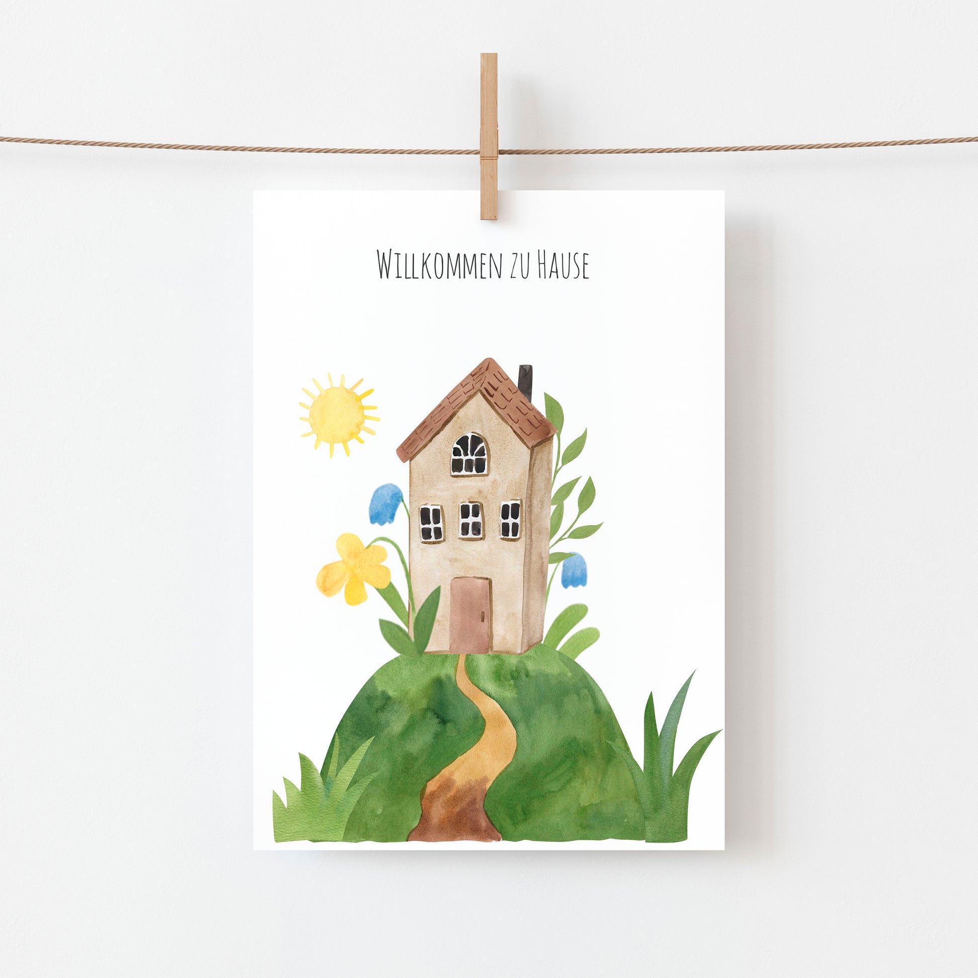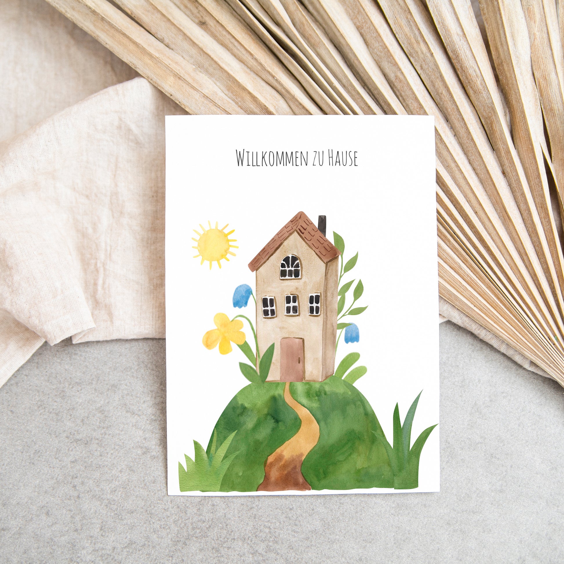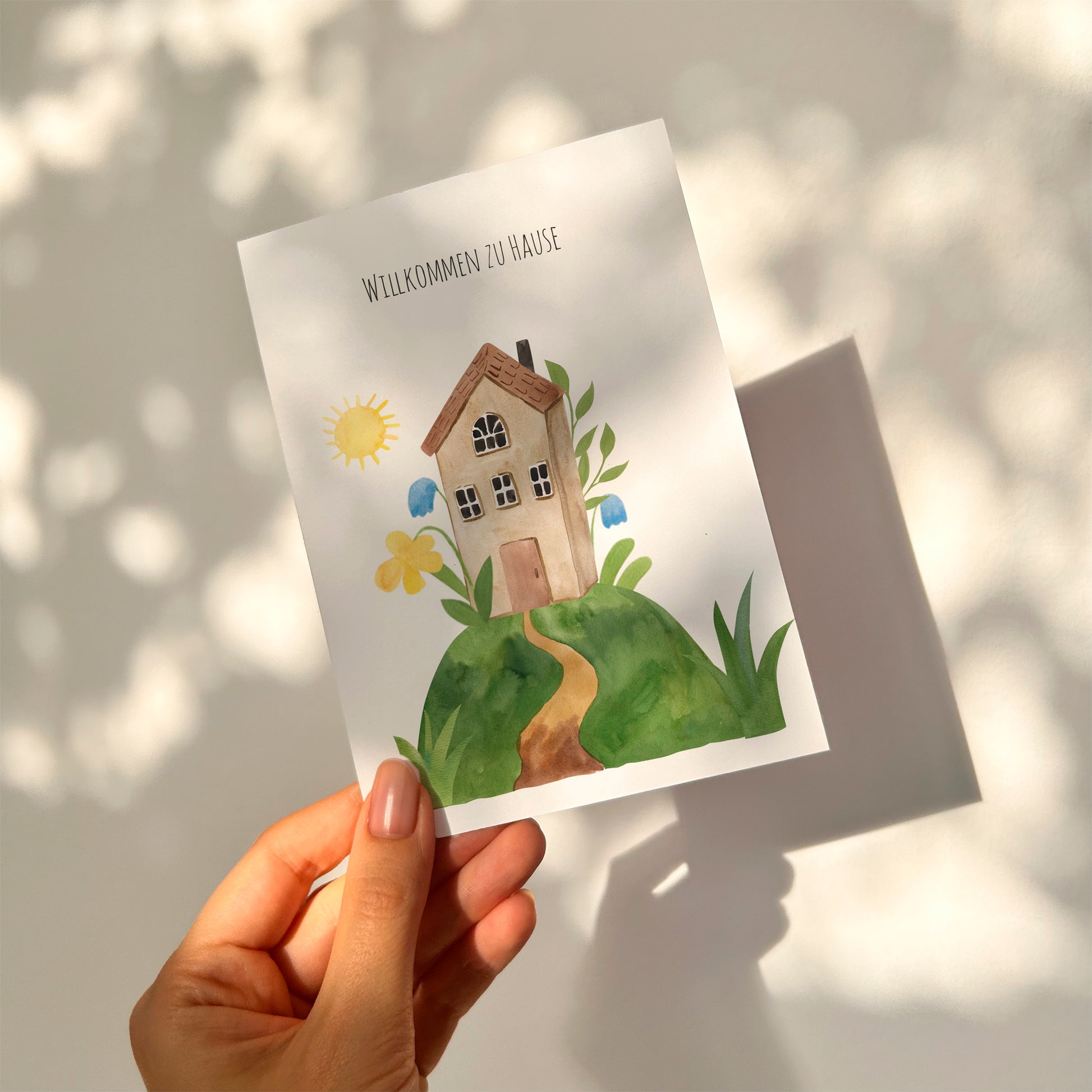 Wunderschön gestaltete Postkarte mit fantasievollem Hausmotiv. Perfekt als Glückwunschkarte zum Einzug/Umzug, für die Einweihungsparty, als Gratulation zum neuen Haus oder als Dekoration oder für liebe Grüße an Freunde und Familie.