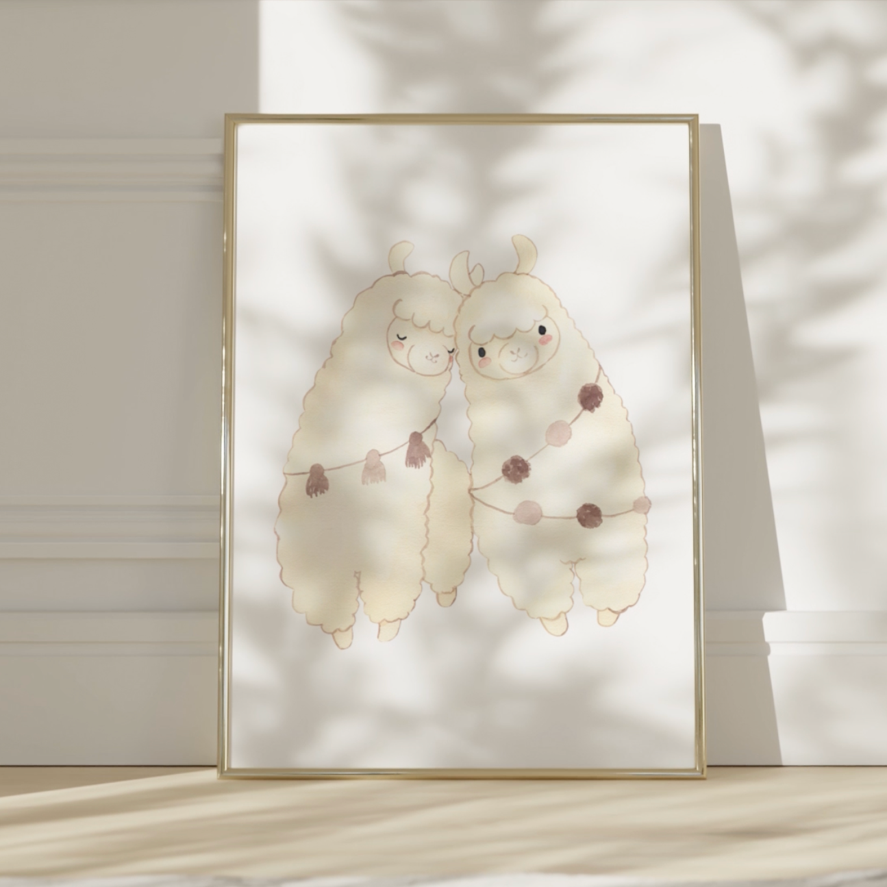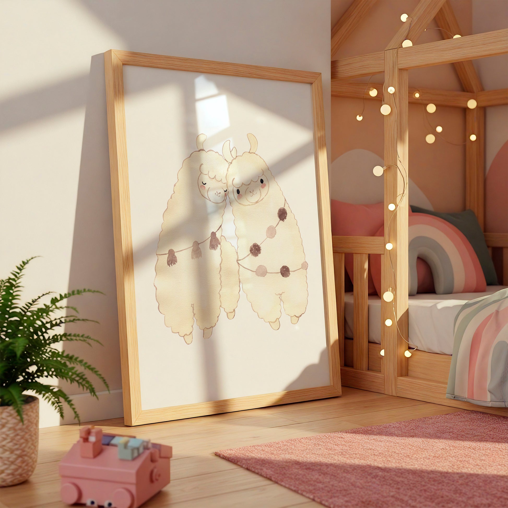 Dieses zauberhaft gestaltete Poster mit den süßen Alpakas ist die perfekte Dekoration für das Kinderzimmer. Mit seinem wunderschönen Design und der detaillierten Illustration lässt das Kinderbild Kinderaugen strahlen.