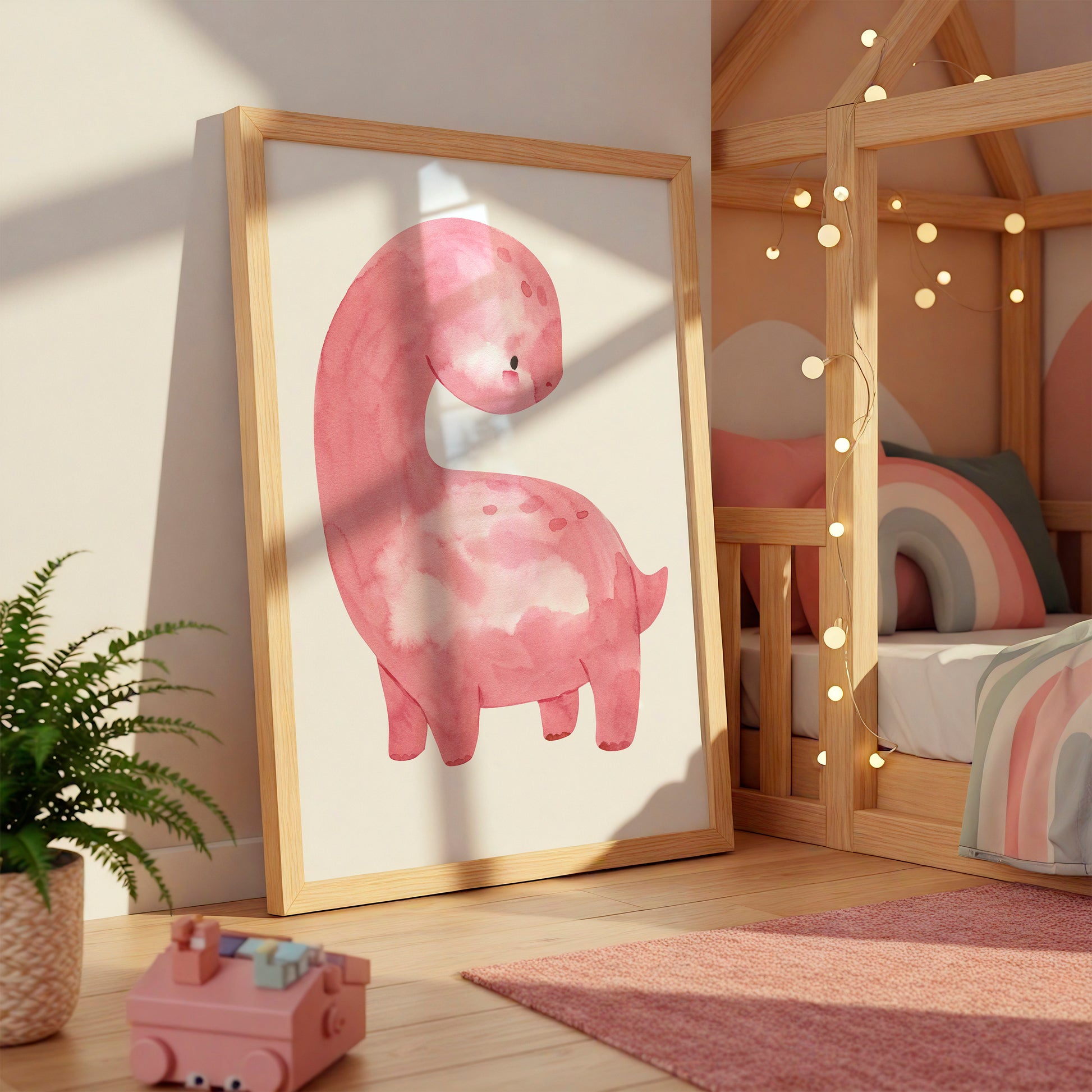 Dieses süße Poster mit dem Dino in Pink ist die perfekte Dekoration für das Mädchenzimmer. Mit seinem wunderschönen Design und der detaillierten Illustration lässt das Bild Kinderaugen strahlen. Das Kinderbild eignet sich als Kinderzimmerdeko, als Geschenk zum Geburtstag oder für Babys zur Geburt.