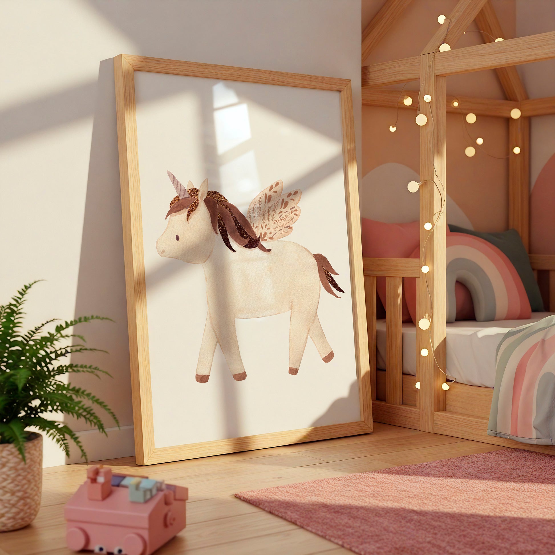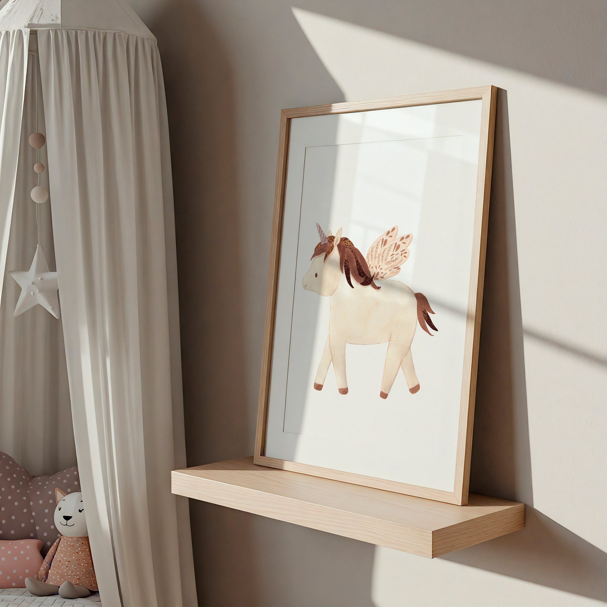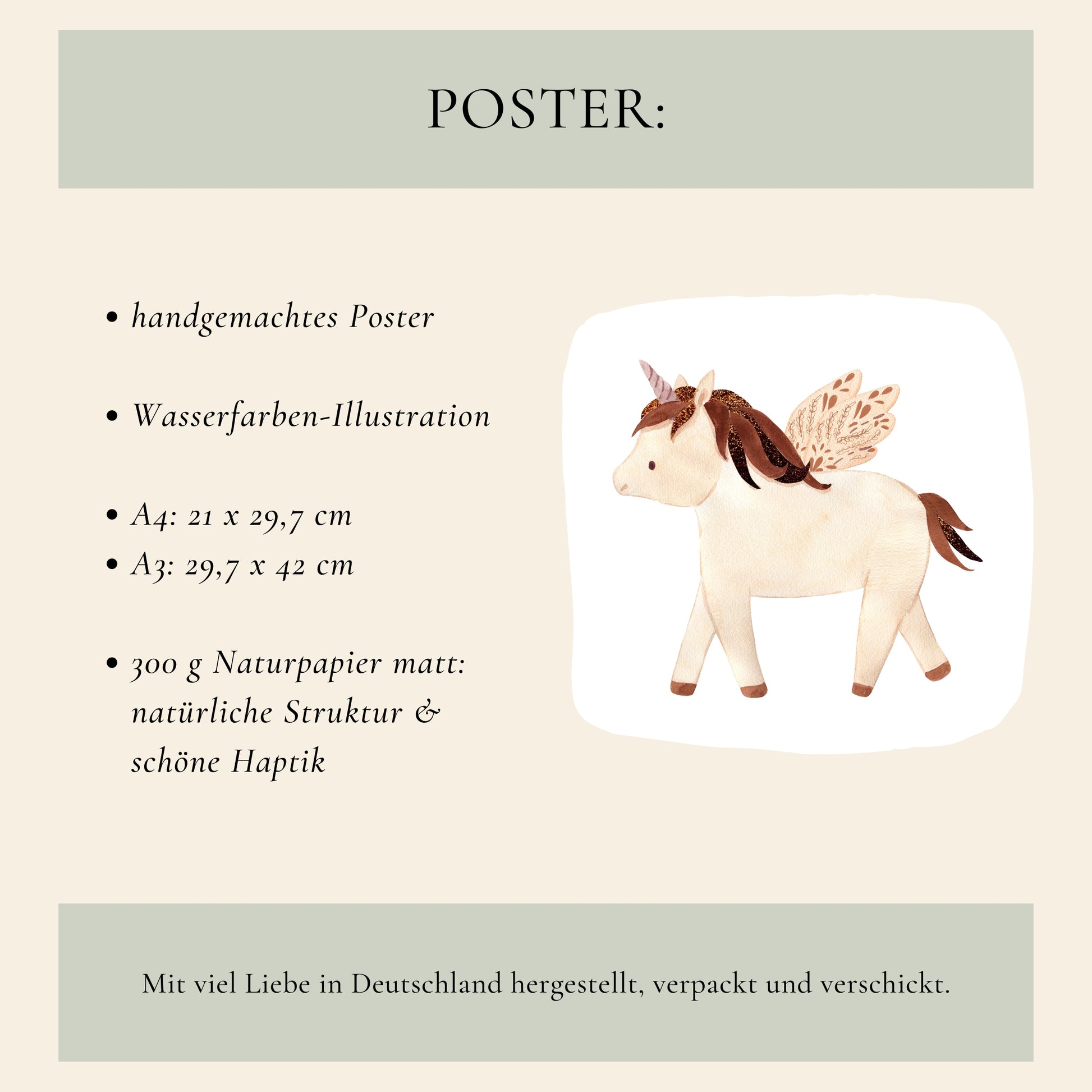 Dieses zauberhaft gestaltete Boho Poster mit dem geflügelten Einhorn ist die perfekte Dekoration für das Kinderzimmer. Mit seinem wunderschönen Design und der detaillierten Illustration lässt das Kinderbild Kinderaugen strahlen.