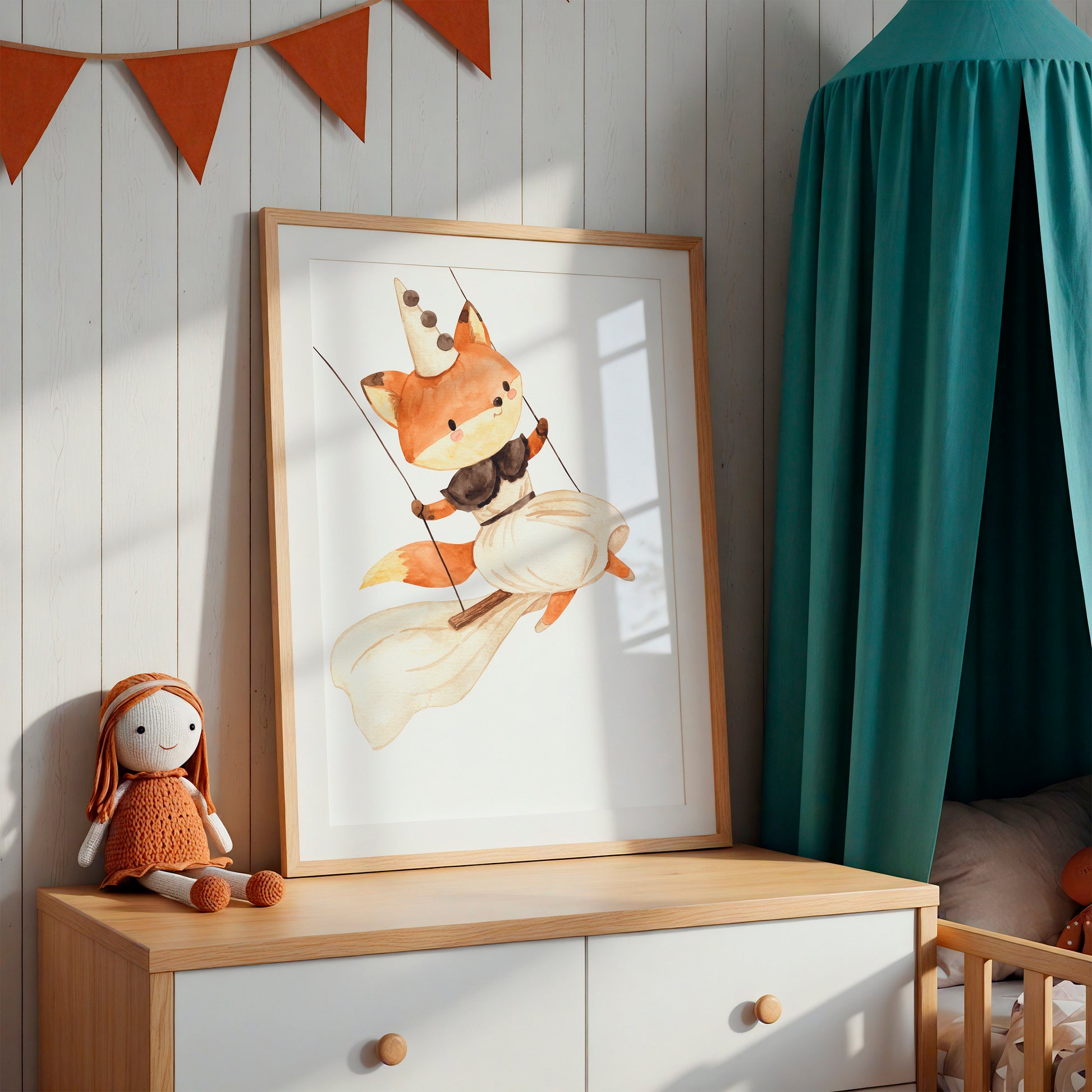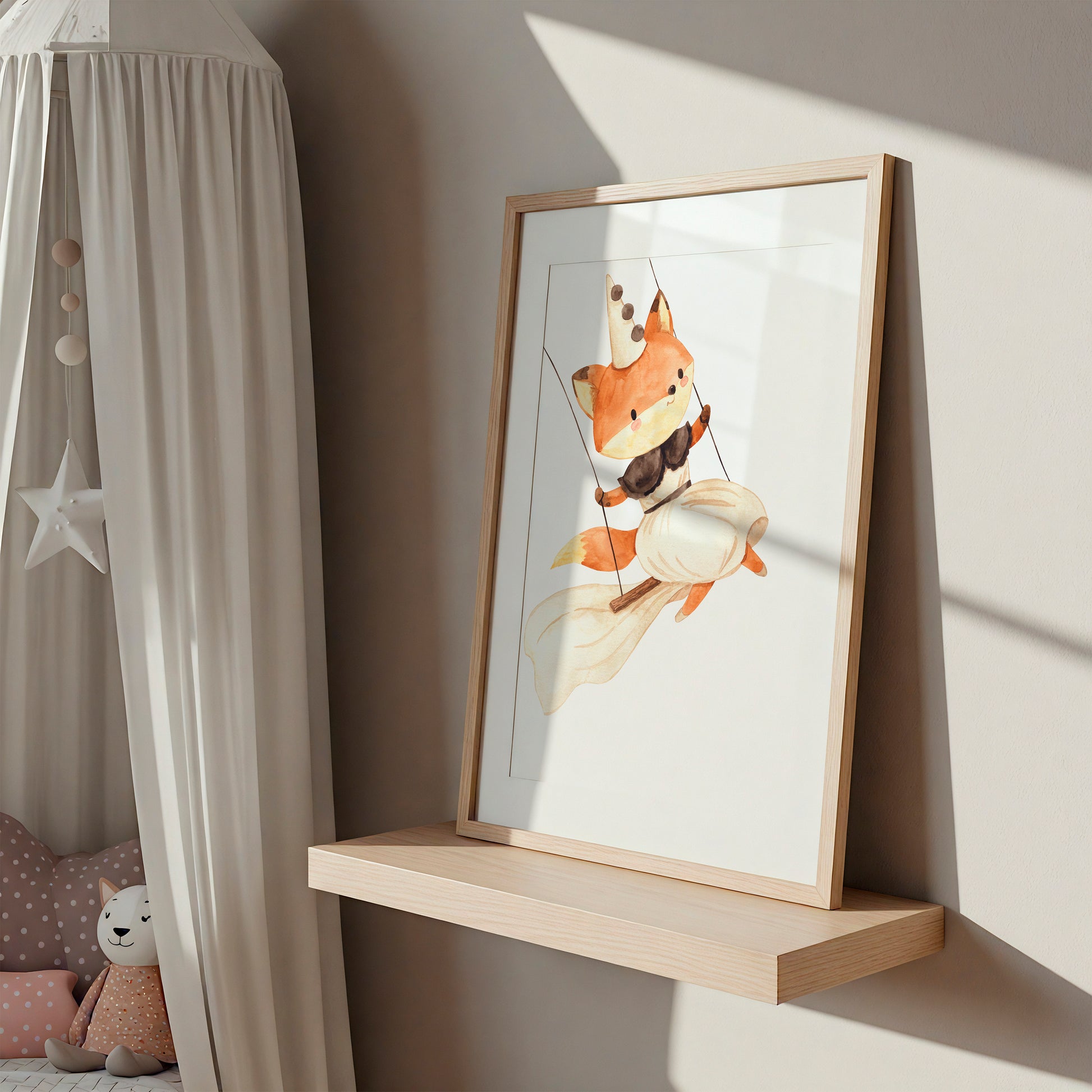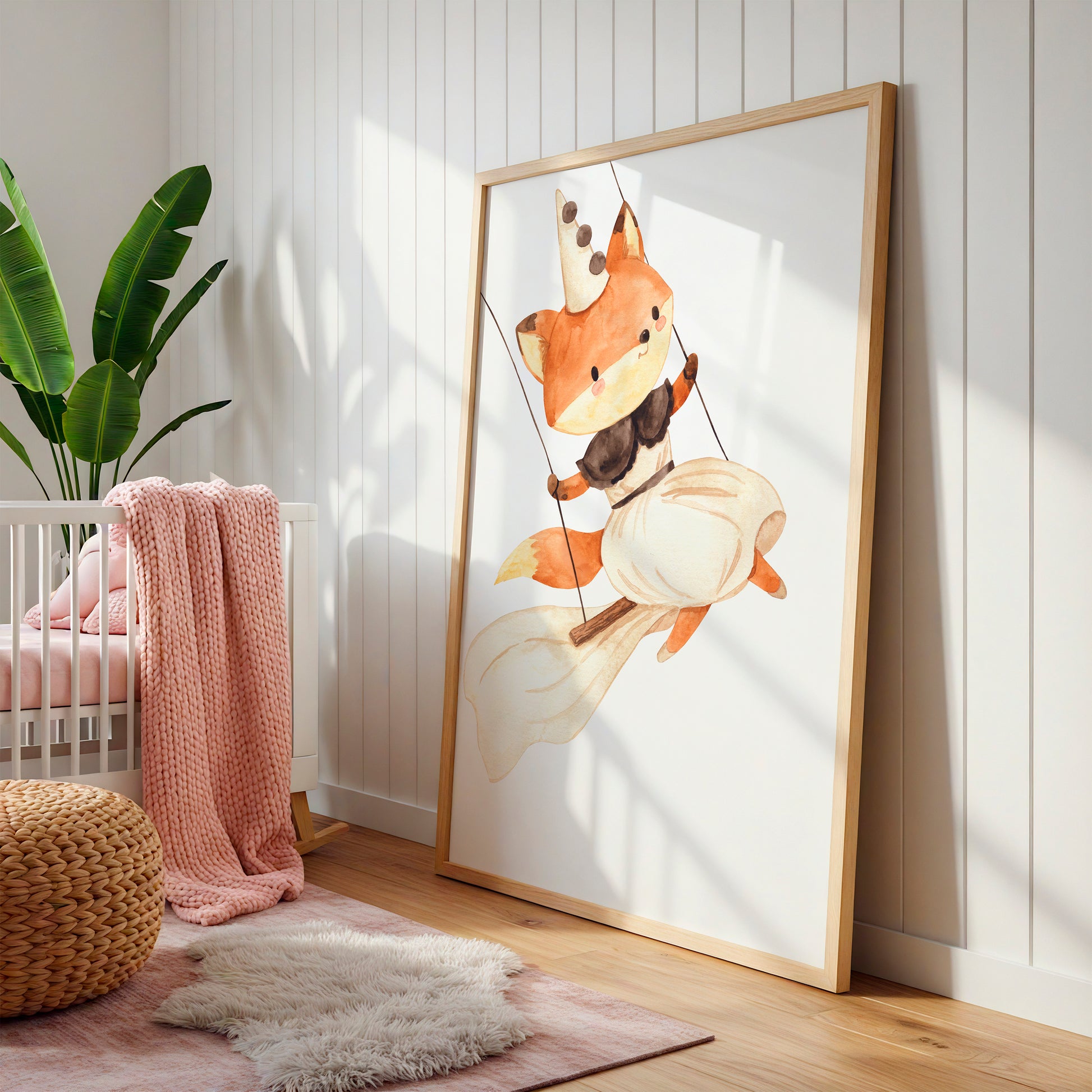 Dieses zauberhafte Poster mit der niedlichen Füchsin auf ihrer Schaukel bringt spielerische Leichtigkeit ins Kinderzimmer. Es eignet sich als Kinderzimmerdeko, als Geschenk zum Geburtstag oder für Babys zur Geburt. Das Poster regt die Fantasie an und ist ideal für kleine Träumer.
