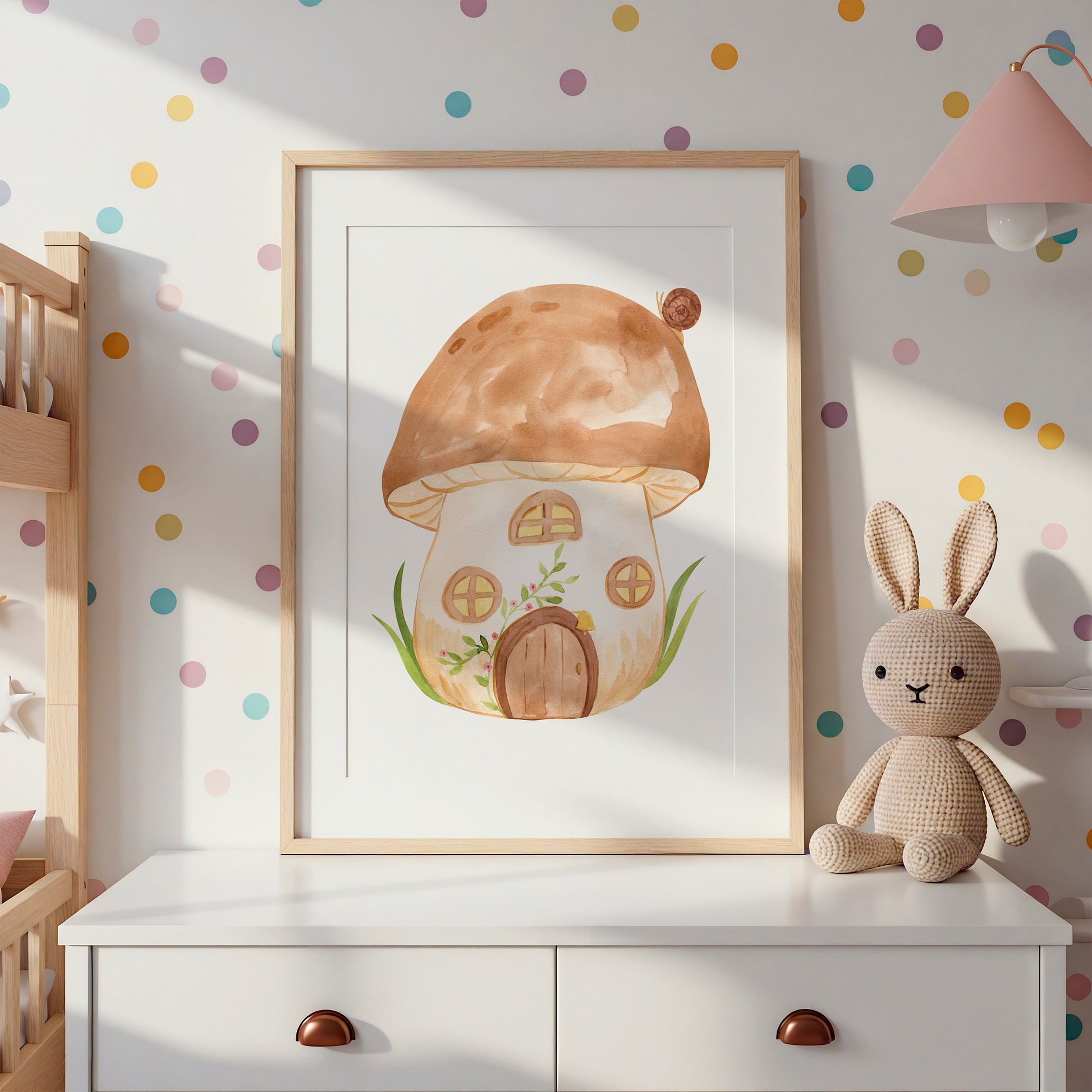 Dieses zauberhafte Poster mit dem süßen Pilzhaus eignet sich als Kinderzimmerdeko, als Geschenk zum Geburtstag oder für Babys zur Geburt. Das Kinderbild ist ideal für kleine Träumer. Es schafft eine fantasievolle Atmosphäre und bringt den Wald ins Kinderzimmer.