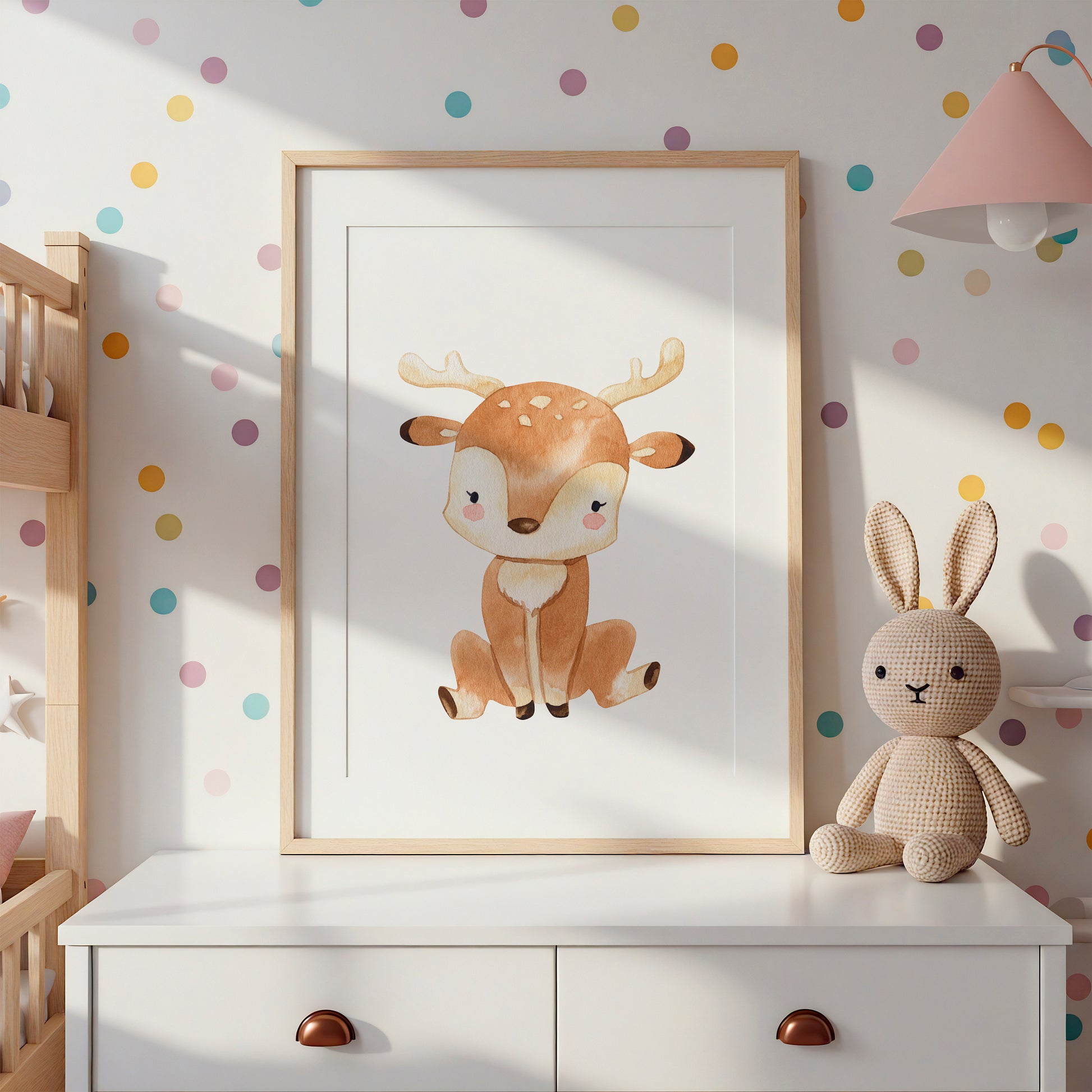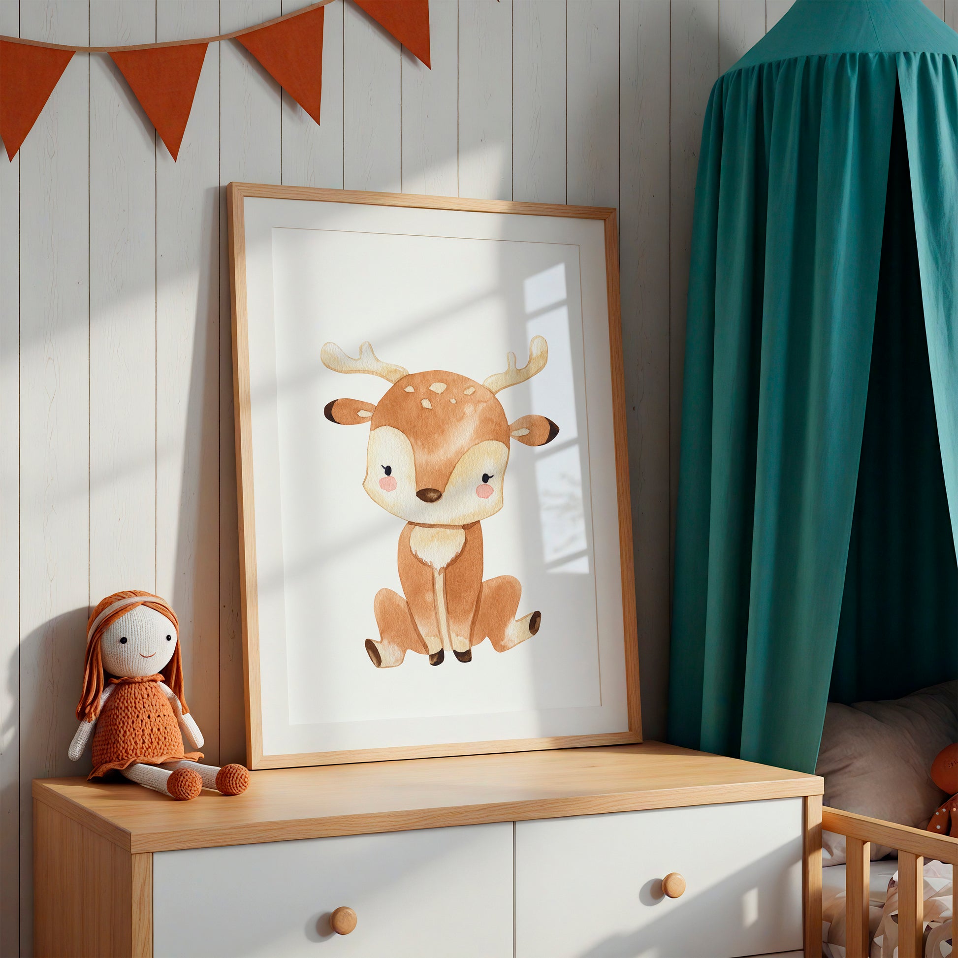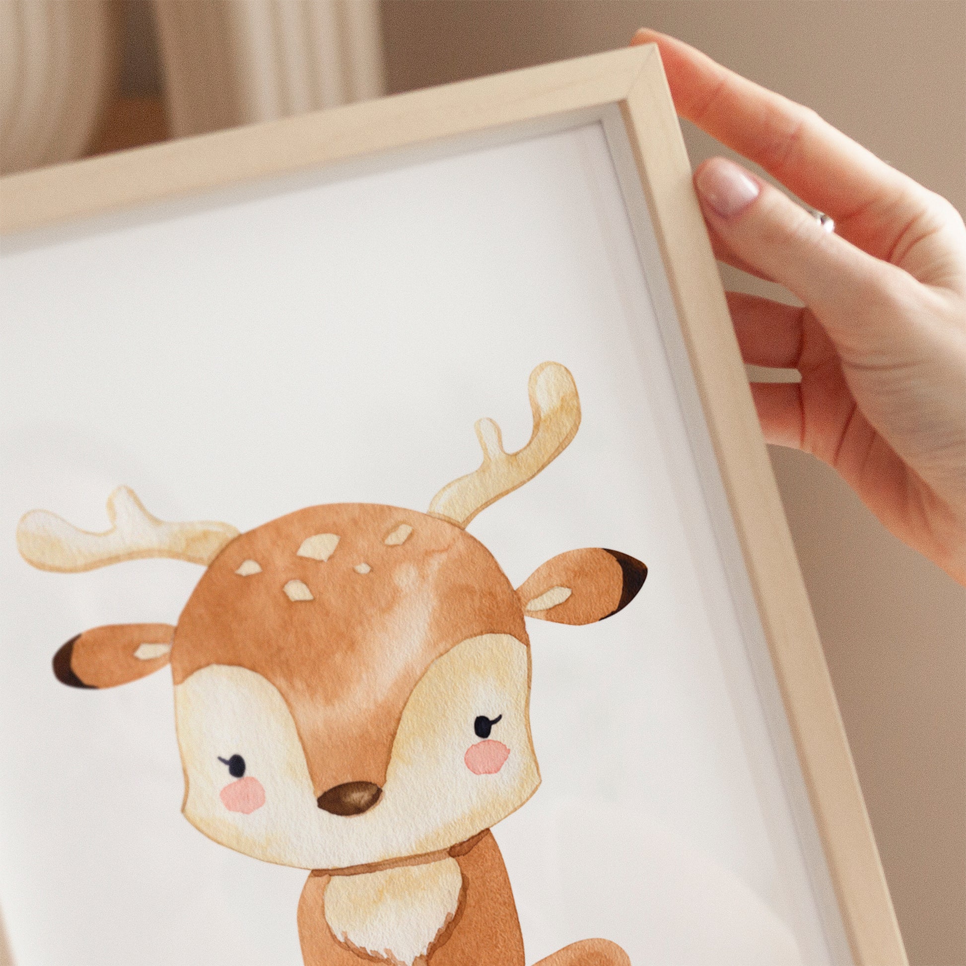 Dieses schöne Poster mit dem niedlichen Reh zaubert jedem ein Lächeln auf die Lippen. Es eignet sich als Kinderzimmerdeko, als Geschenk zum Geburtstag oder für Babys zur Geburt. Das Kinderbild ist ideal für kleine Tierfreunde.