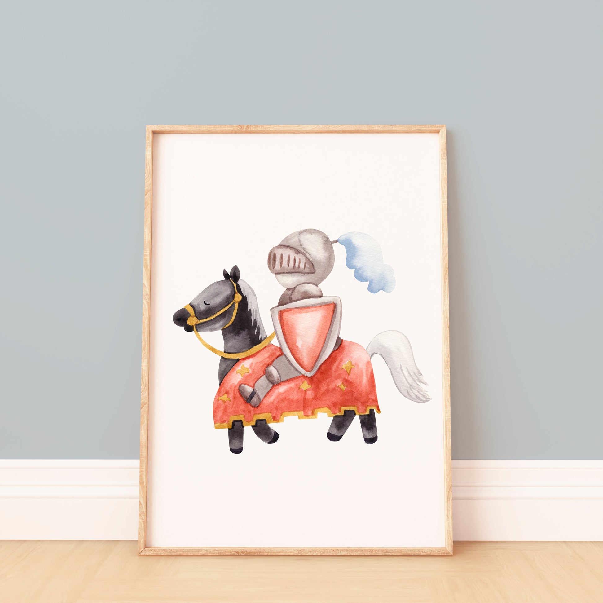 Dieses tolle Ritterposter bringt die Fantasiewelt ins Kinderzimmer. Das Poster eignet sich als Kinderzimmerdeko, als Geschenk zum Geburtstag oder für Babys zur Geburt. Das Kinderbild ist ideal für kleine Träumer. Das passende Burg- und Drachenposter findest Du als Set und einzeln in meinem Shop.