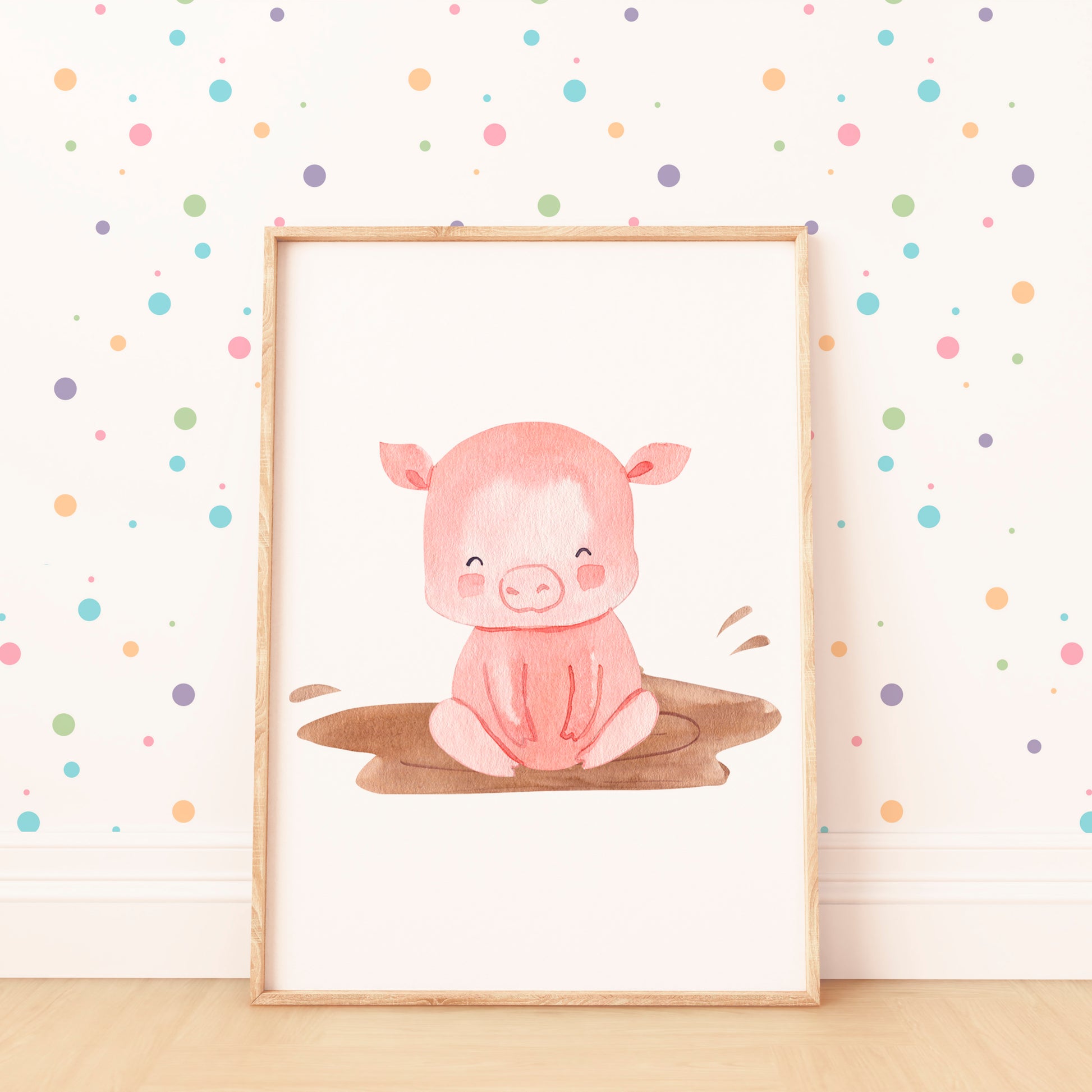 Willkommen auf dem Bauernhof! Dieses liebevoll gestaltete Poster ist der perfekte Blickfang für das Kinderzimmer. Mit seinem fröhlichen Design und der detaillierten Illustration lässt es Kinderaugen strahlen.