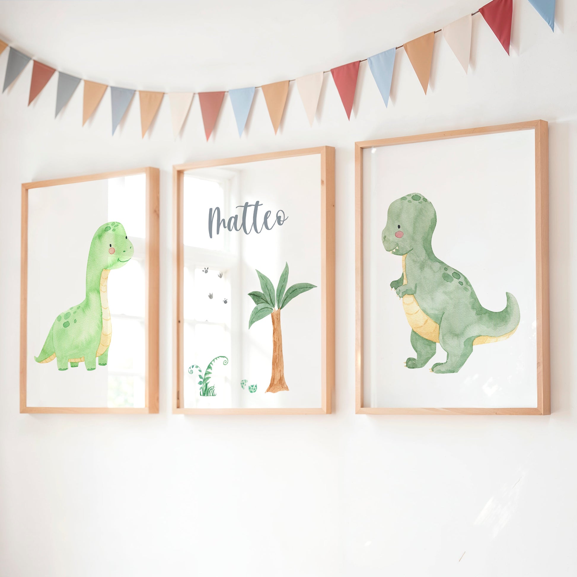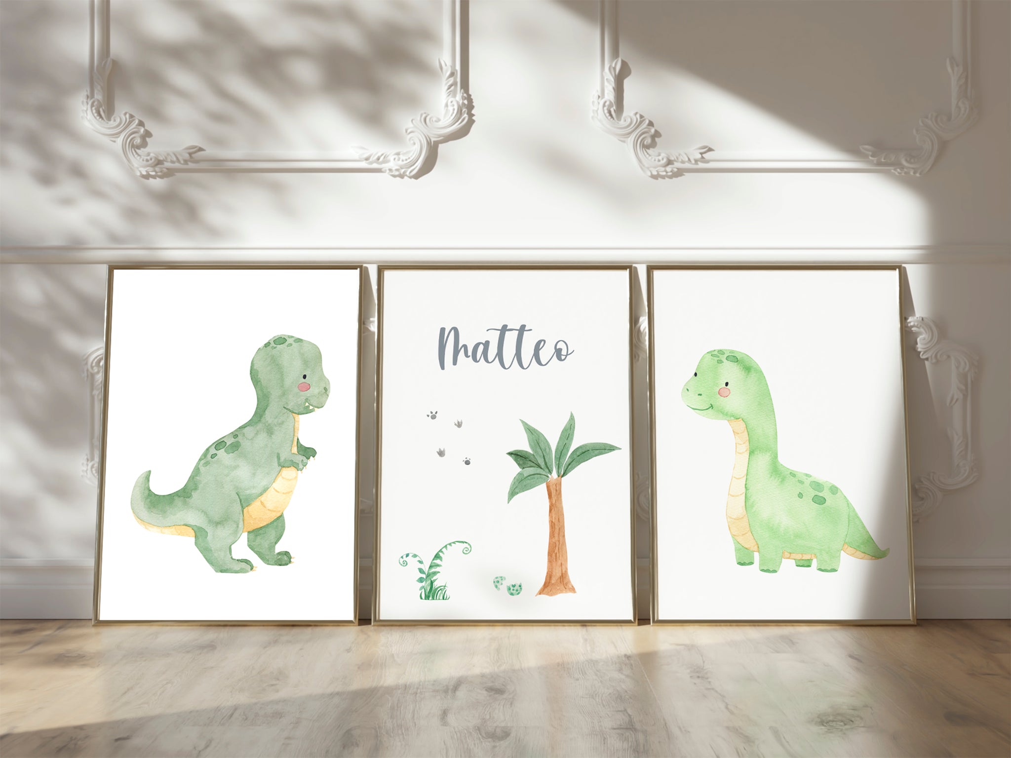 Dieses liebevoll gestaltete personalisierte 3er-Poster-Set mit Dinos bringt kleine Entdeckeraugen zum Leuchten. Perfekt als Wanddeko für das Kinderzimmer oder als Geschenk zur Geburt, Taufe oder zum Geburtstag.