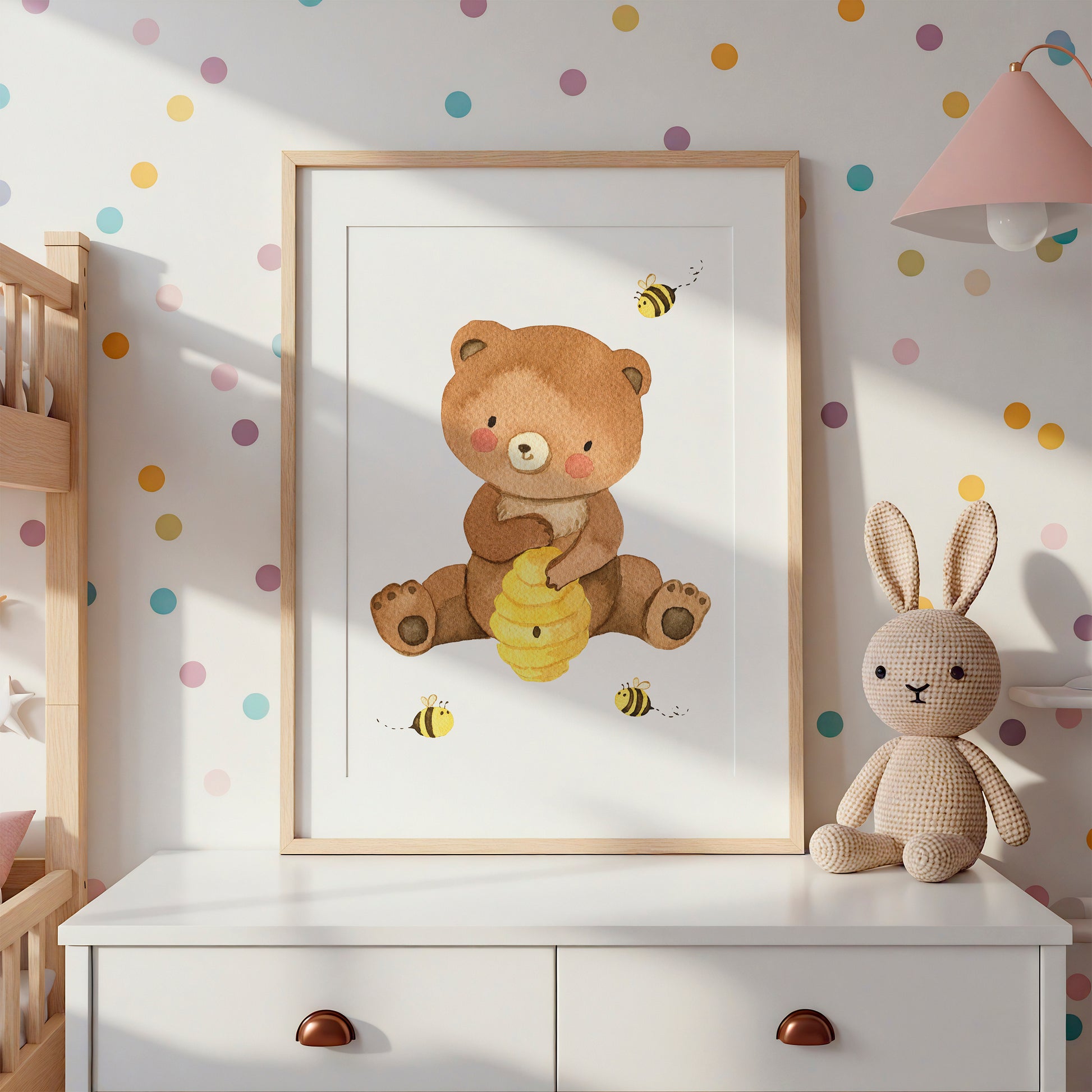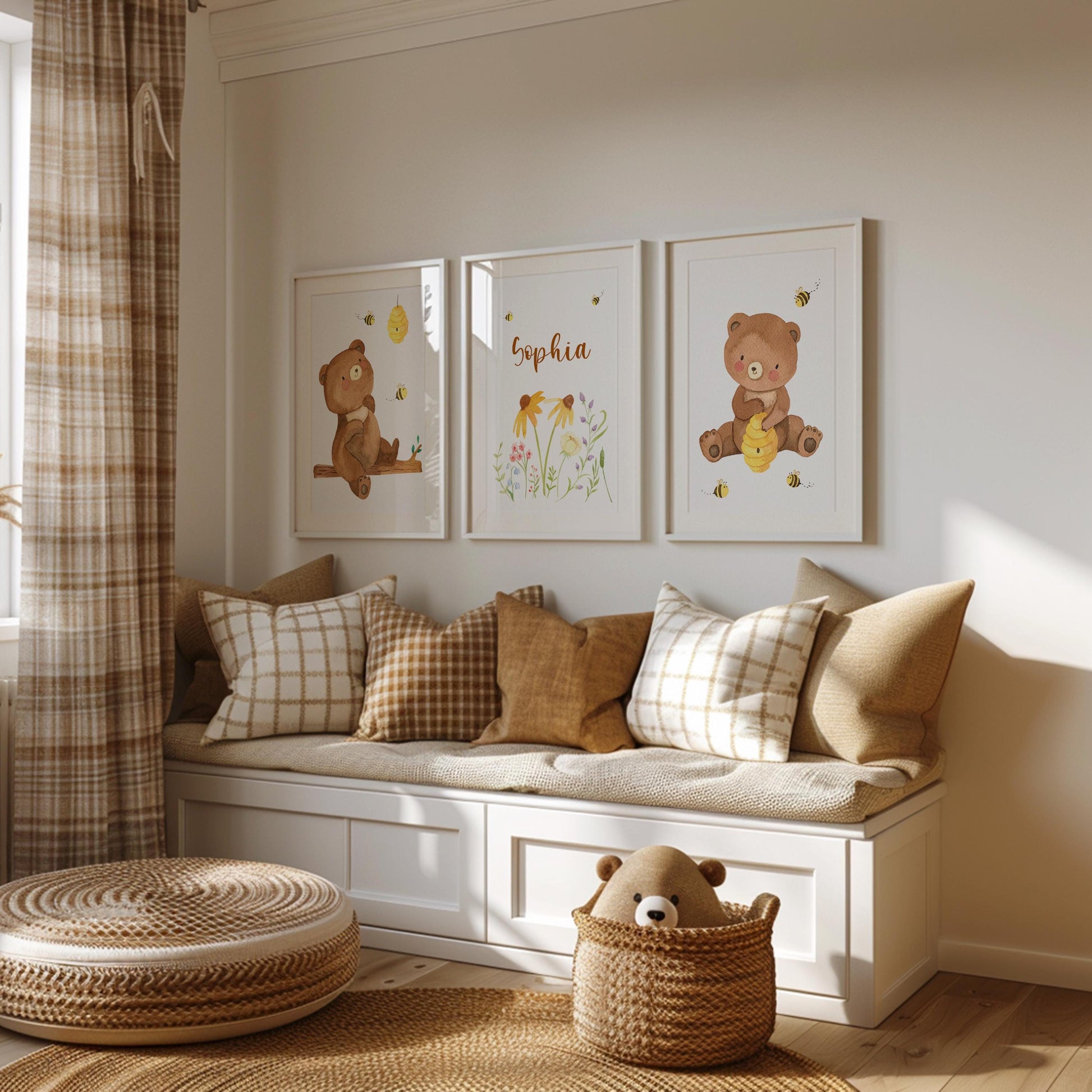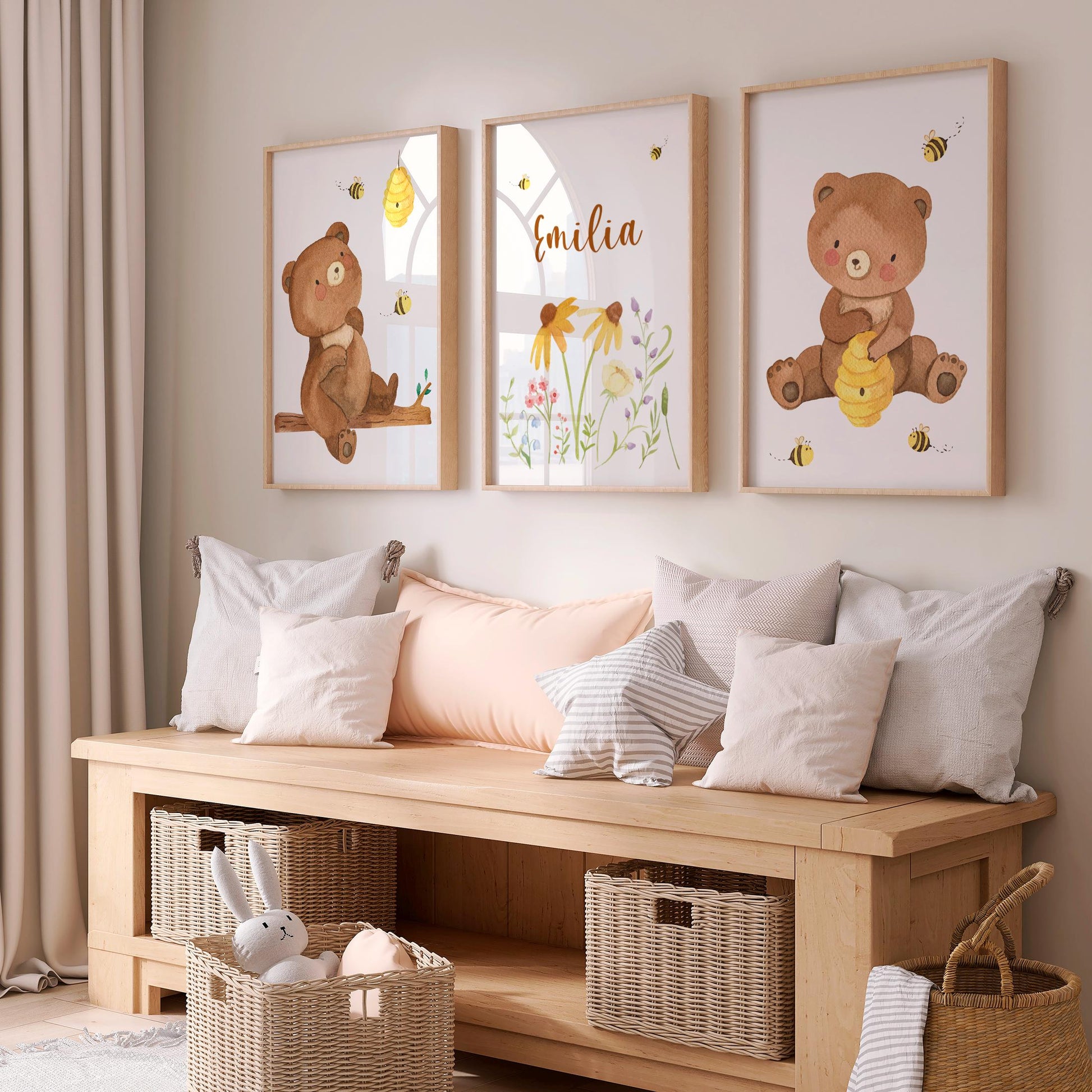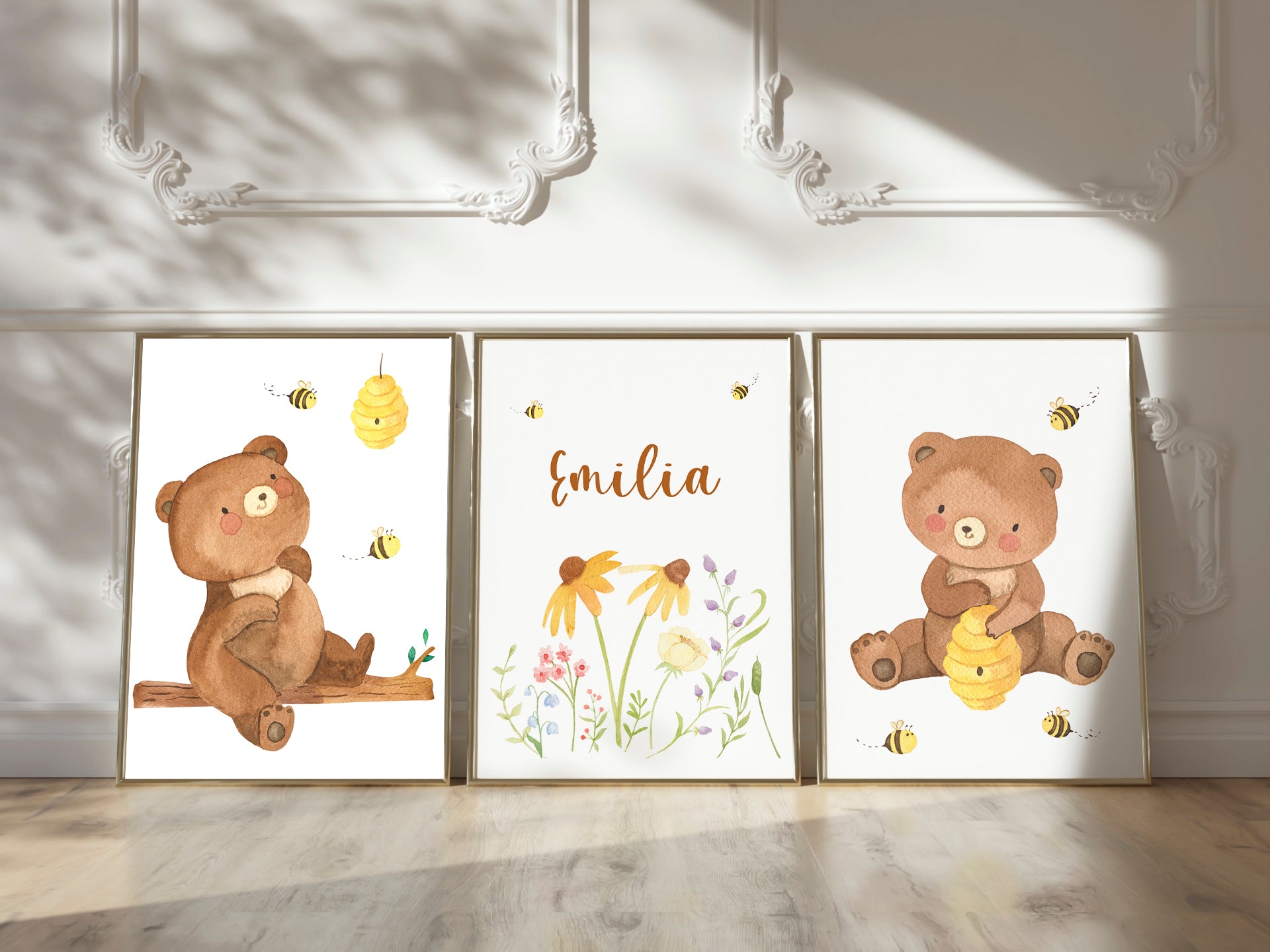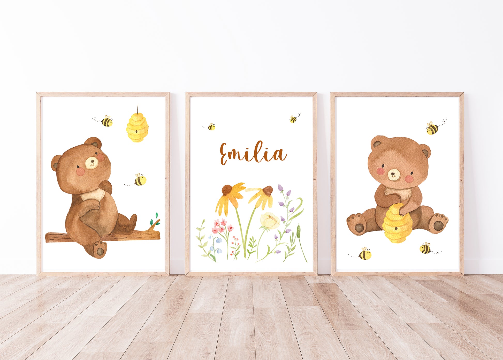 Namensposter personalisiert im 3er Set: Bären und Bienen A3 & A4