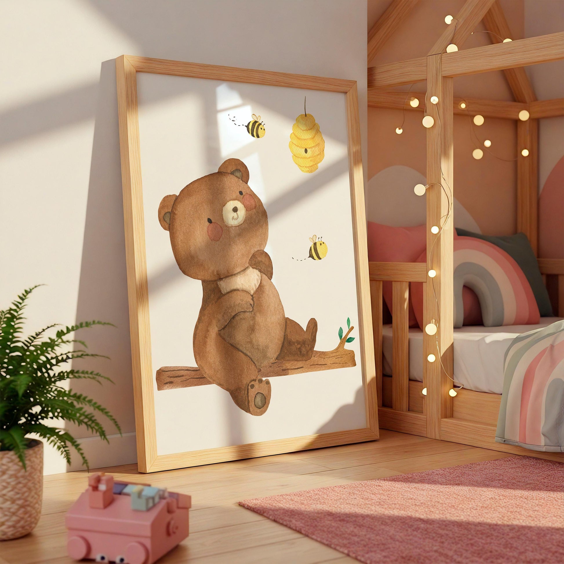 Dieses liebevoll gestaltete, personalisierte 3er-Poster-Set mit Bären, Bienen und Blumen schafft eine warme, natürliche Atmosphäre im Kinderzimmer. Es eignet sich wunderbar als Wanddeko oder Geschenk zur Geburt, Taufe oder zum Geburtstag und lädt kleine Tierfreunde dazu ein, Neues zu entdecken.