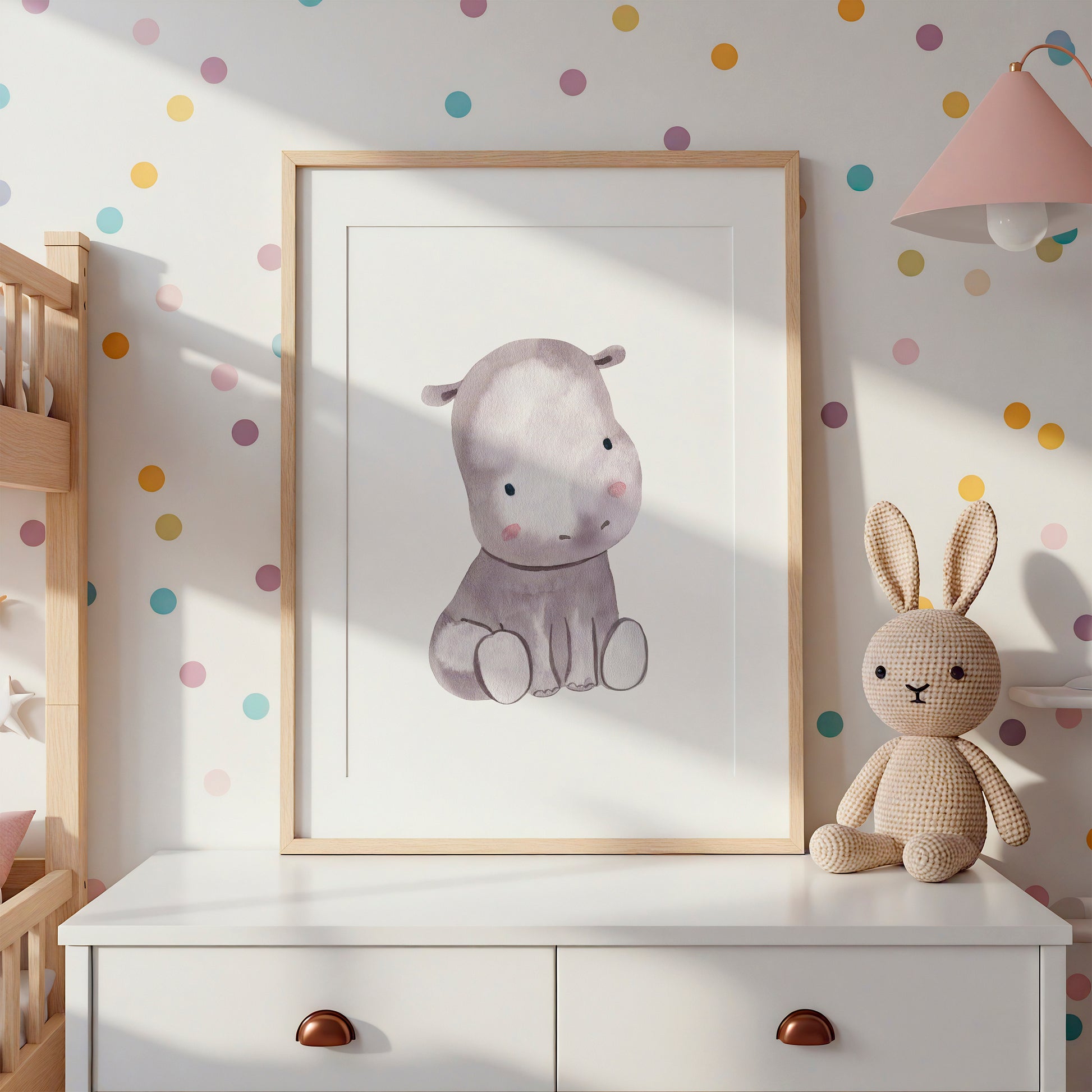 Dieses tolle Poster mit dem süßen Flusspferd bringt Afrika ins Kinderzimmer. Es eignet sich als Kinderzimmerdeko, als Geschenk zum Geburtstag oder für Babys zur Geburt. Das Kinderbild ist ideal für kleine Abenteurer.