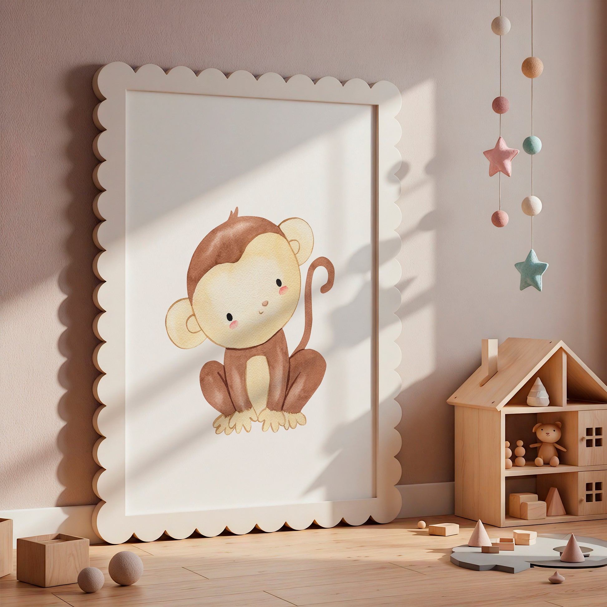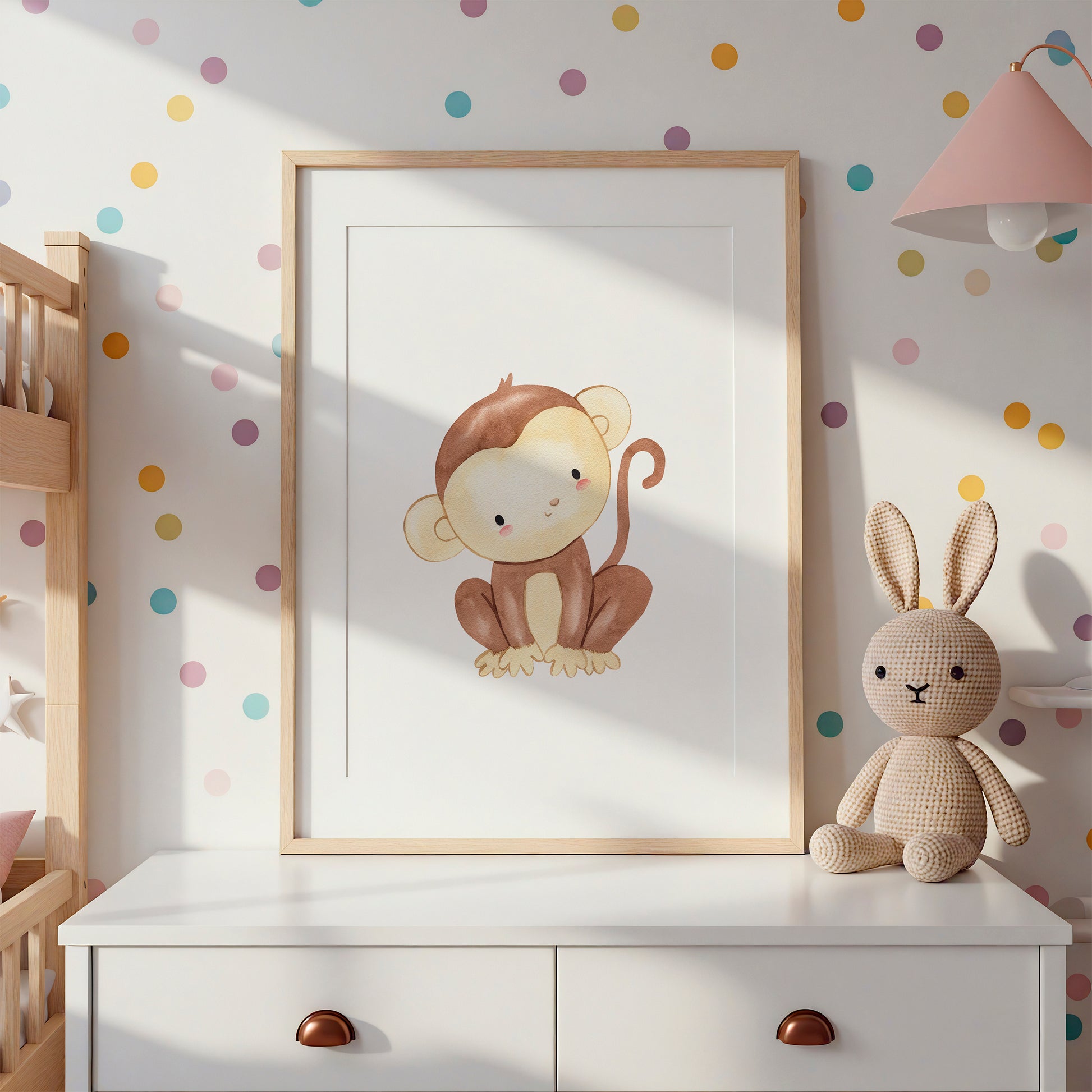 Dieses tolle Poster mit dem süßen Affen bringt Afrika ins Kinderzimmer. Es eignet sich als Kinderzimmerdeko, als Geschenk zum Geburtstag oder für Babys zur Geburt. Das Kinderbild ist ideal für kleine Abenteurer.