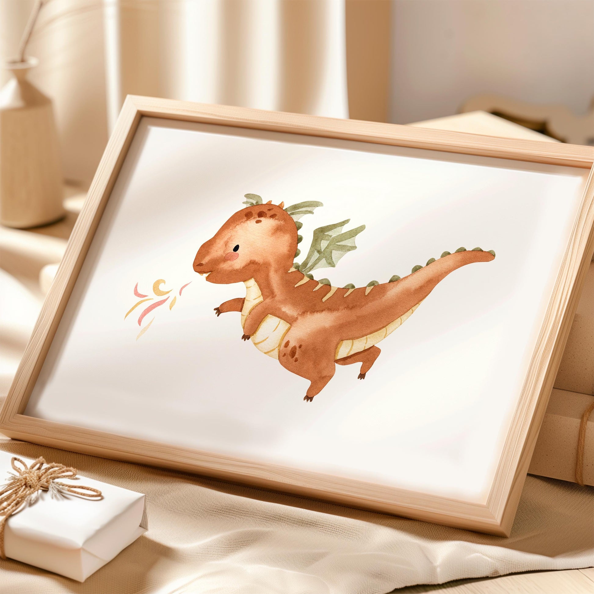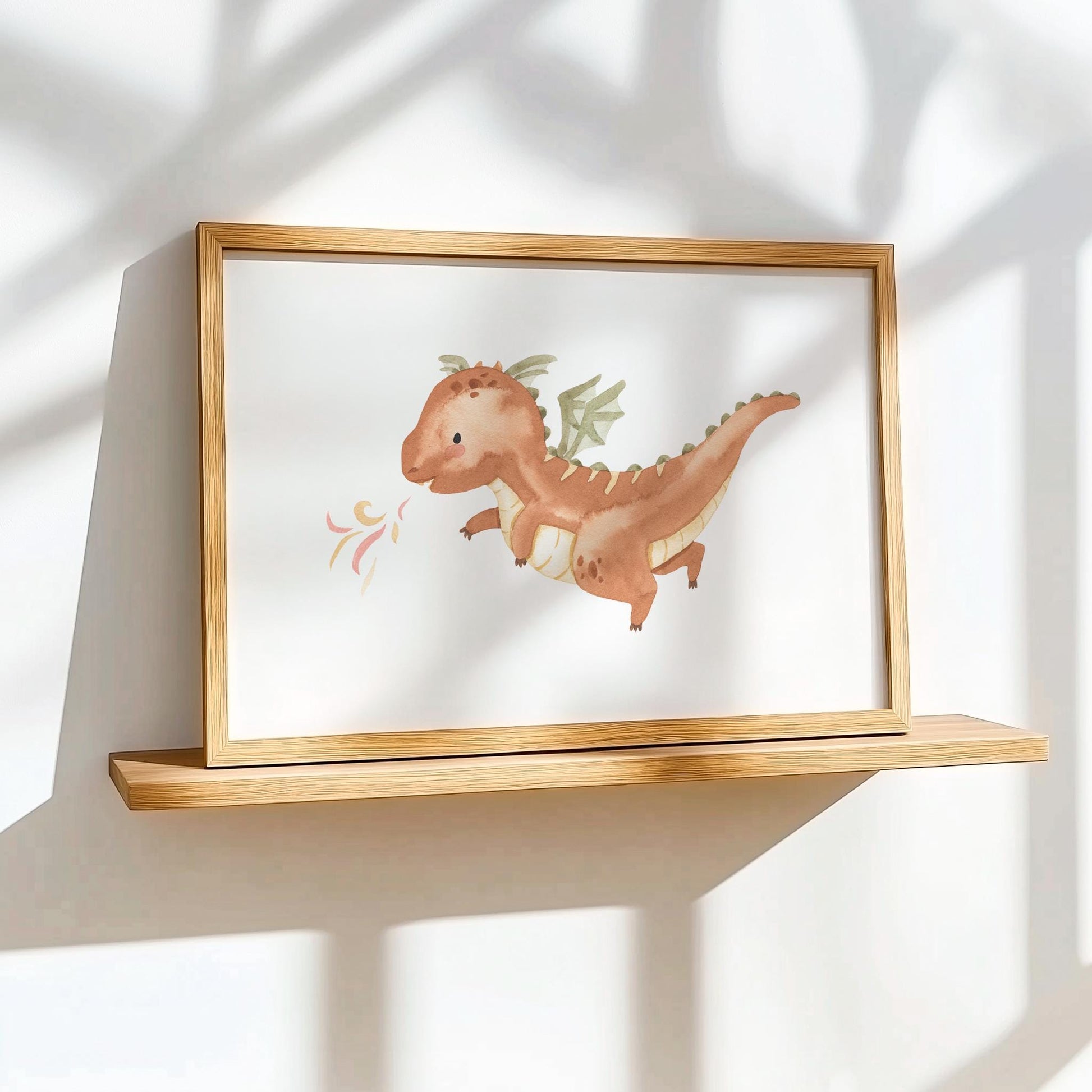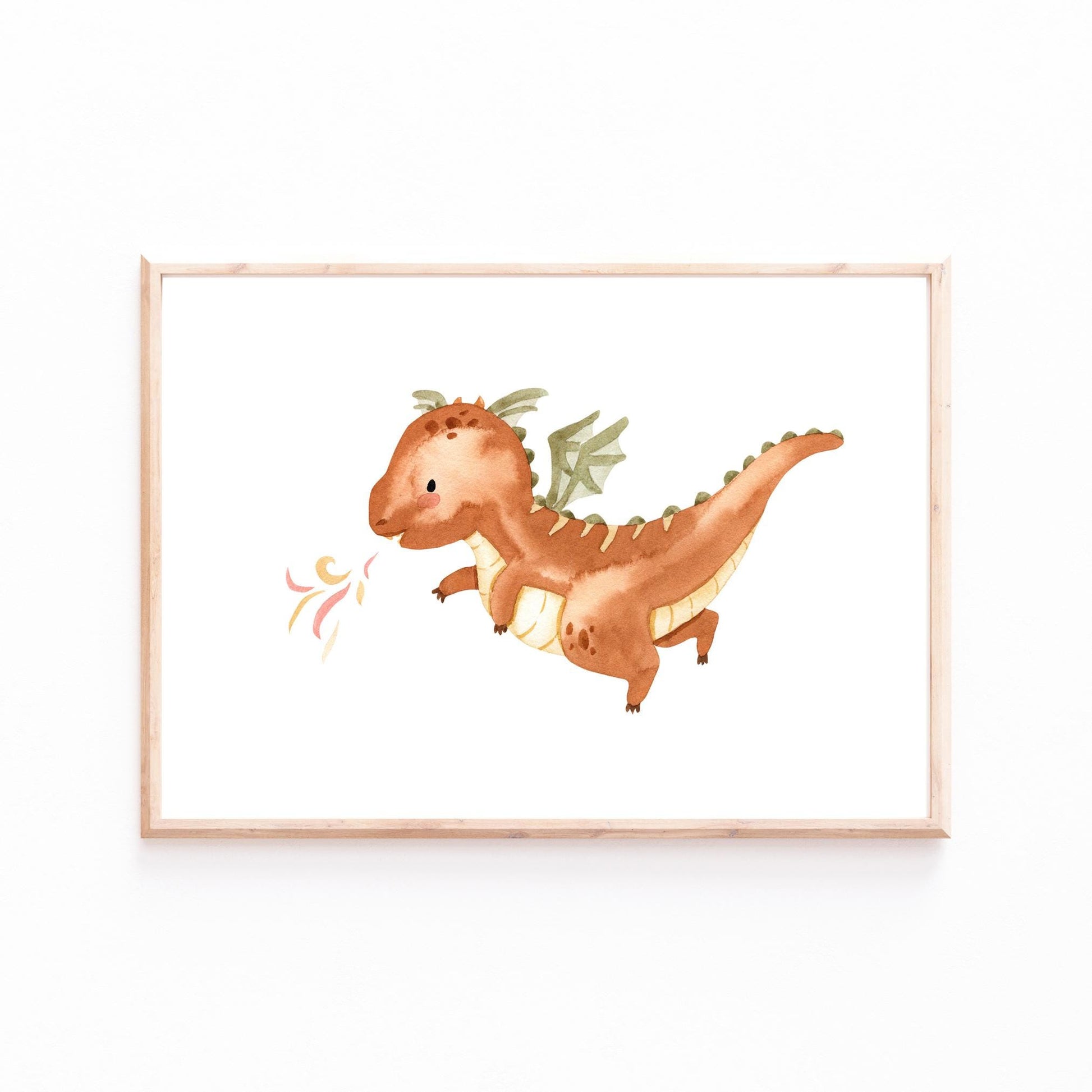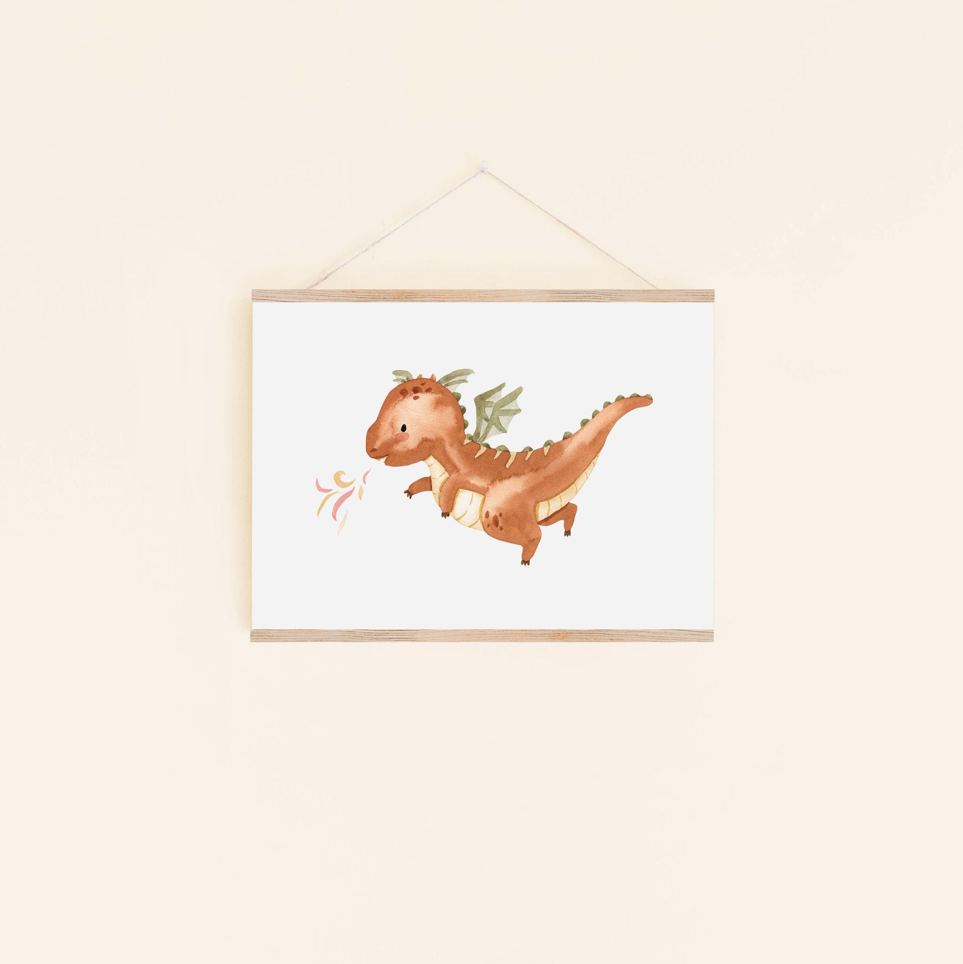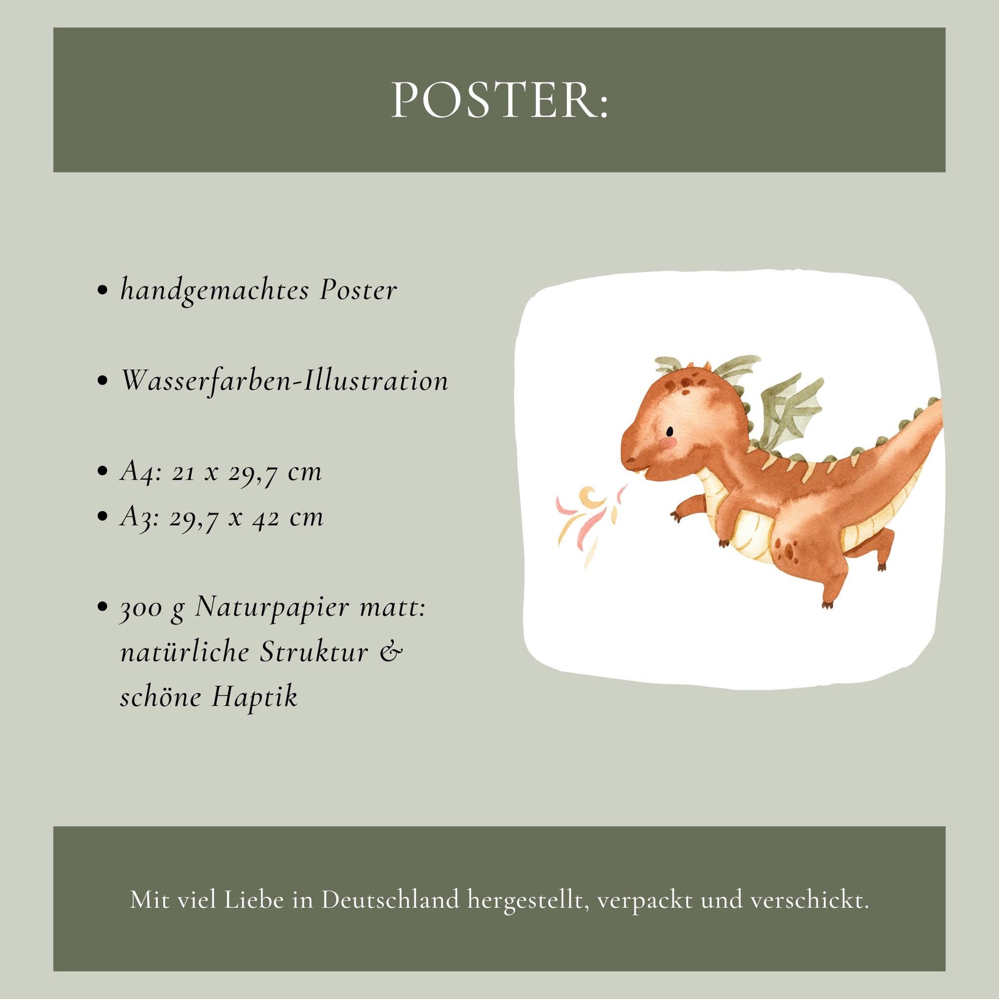 Dieses niedliche Poster mit dem kleinen feuerspuckenden Drachen bringt die Fantasiewelt ins Kinderzimmer. Das Kinderbild eignet sich als Kinderzimmerdeko, als Geschenk zum Geburtstag oder für Babys zur Geburt. Das Poster ist ideal für kleine Träumer.