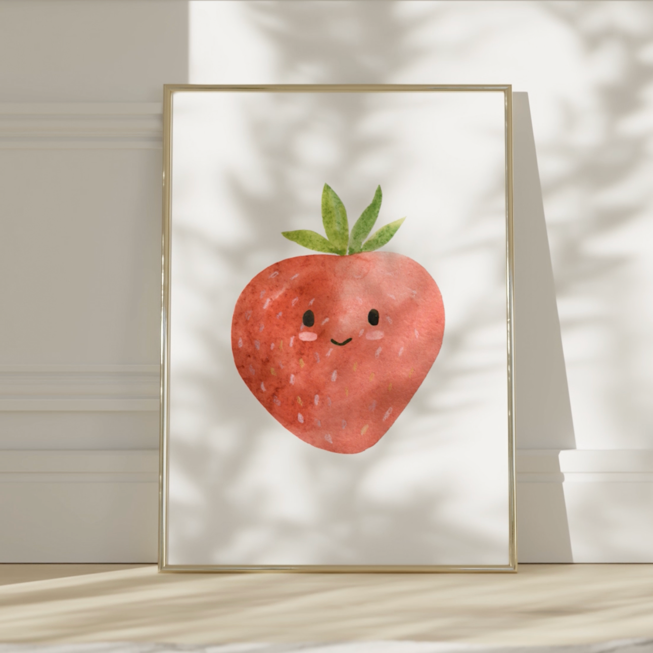 🍓 Dieses Sommer-Poster mit der lächelnden Erdbeere ist perfekt als Kinderzimmerdeko, als Geschenk zum Geburtstag oder für Babys zur Geburt. Das Kinderbild ist ideal für kleine Träumer und bringt eine fröhliche Atmosphäre ins Kinderzimmer.