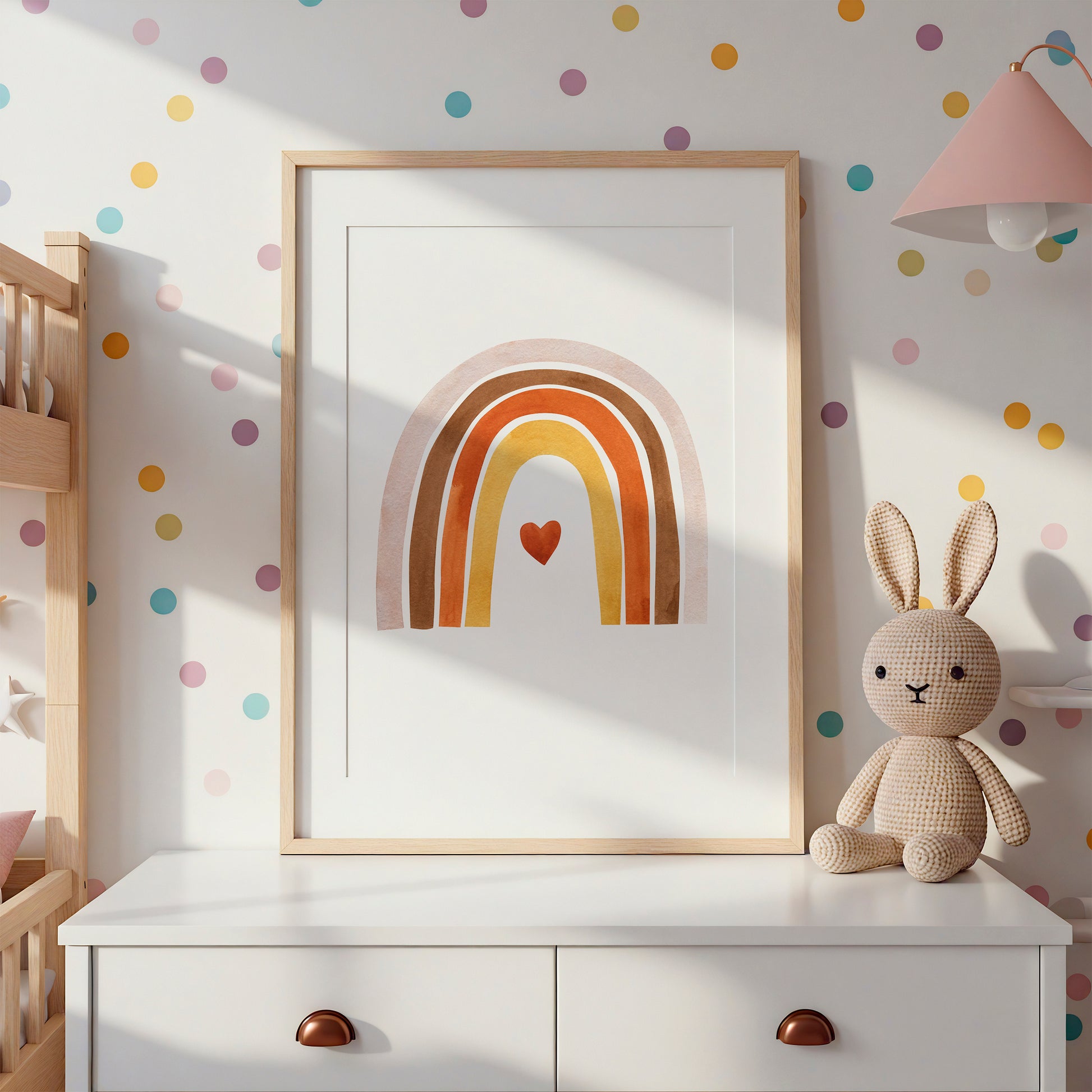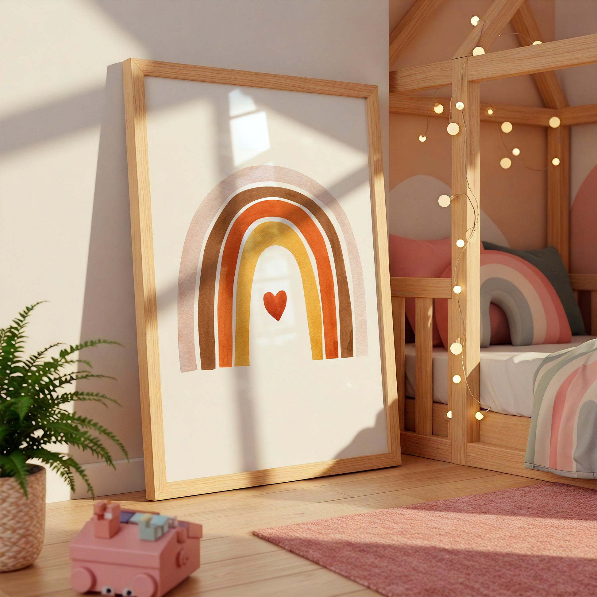 Dieses Aquarell Poster mit dem Regenboge im Boho Stil und dem süßen Herz ist perfekt als Kinderzimmerdeko, als Geschenk zum Geburtstag oder für Babys zur Geburt. Das Kinderbild ist ideal für kleine Träumer und bringt eine entspannte Atmosphäre ins Kinderzimmer.