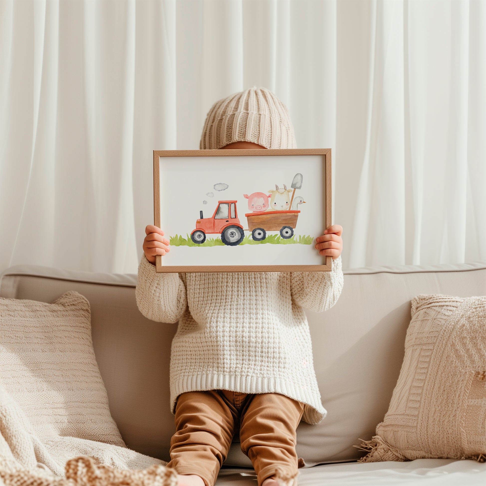 Poster Bauernhof: Traktor und Tiere A3 & A4