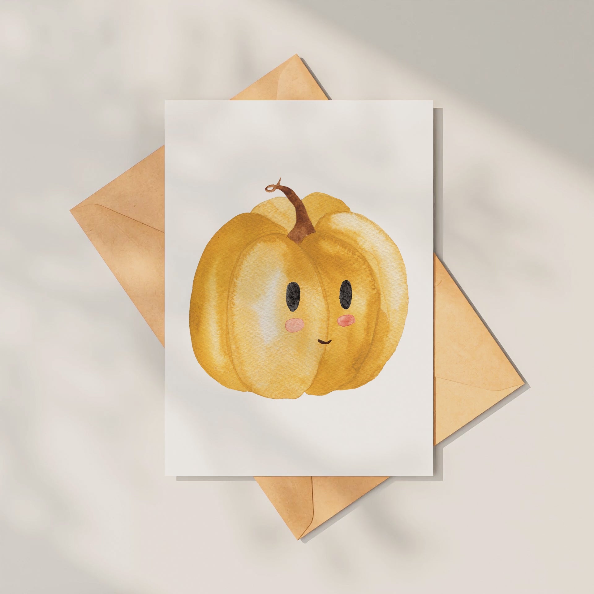 Liebevoll gestaltetes Postkarten Set aus 3 herbstlichen Karten mit niedlichen Kürbissen für alle, die den Herbst lieben. Perfekt für liebe Grüße, als Glückwunschkarte, Geschenk oder in einem Rahmen als Herbstdekoration.