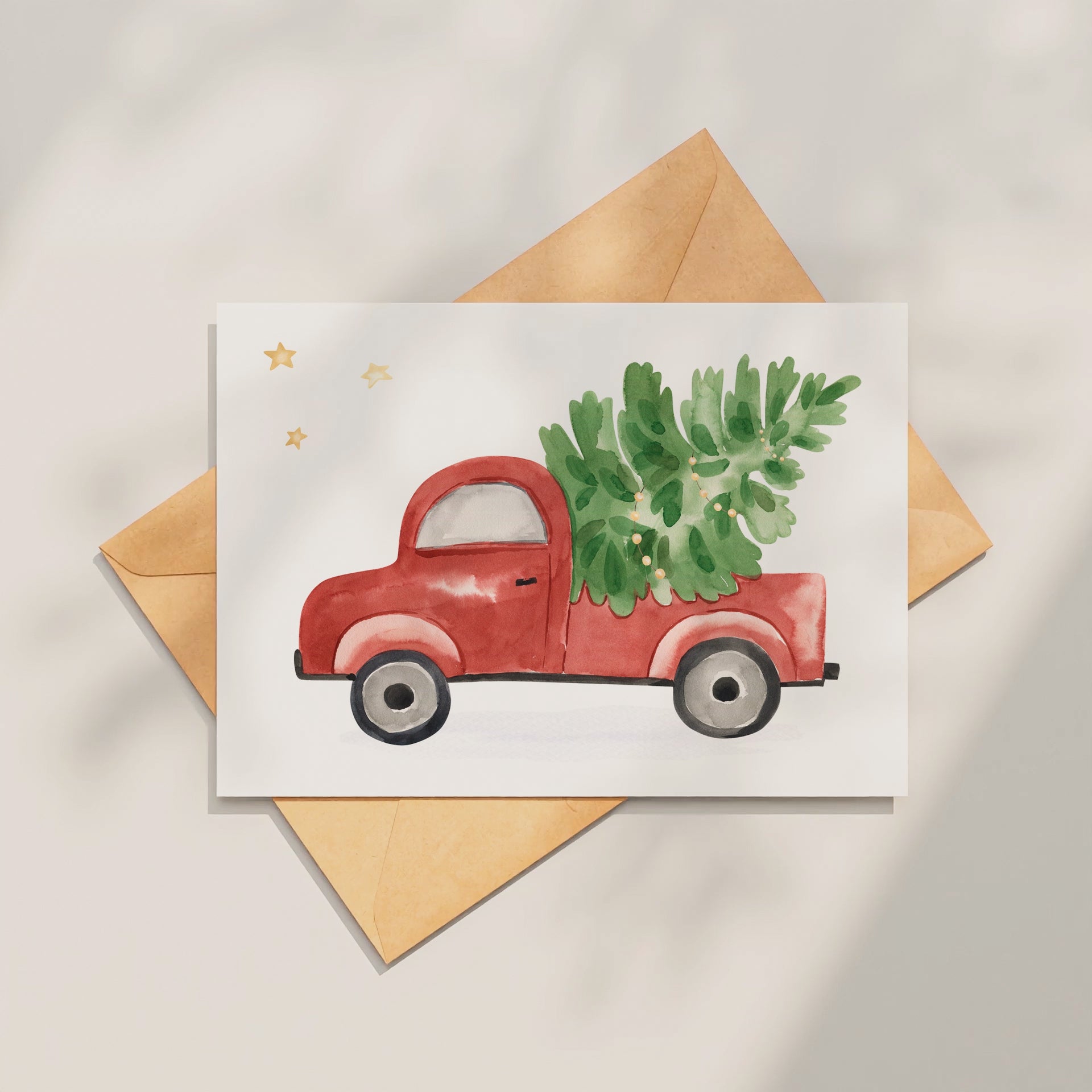 Karte Weihnachten Weihnachtskarten für Kinder Grußkarte Karten für Weihnachten Öko Weihnachtskarte mit Auto Weihnachtsbaum Driving Home for Christmas Weihnachtskarte für Familie Weihnachtskarten Set Weihnachtspost