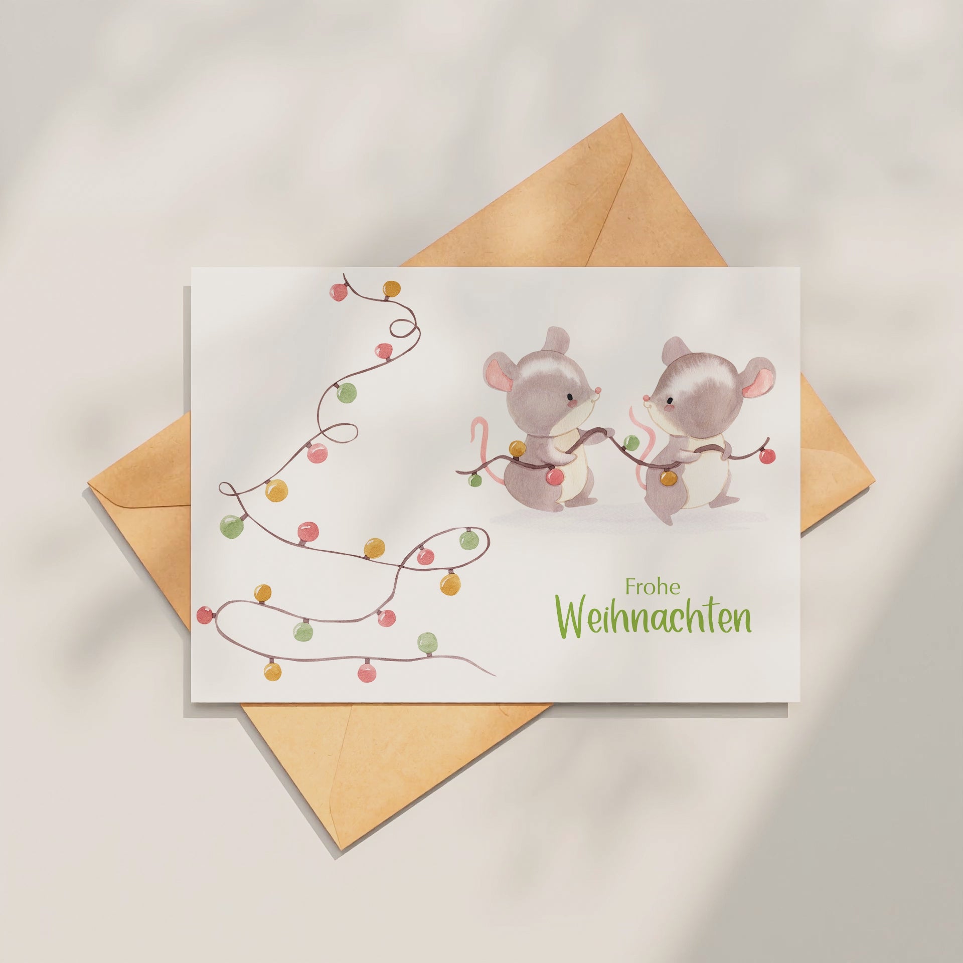 Weihnachtskarte Mäuse & Lichterkette Frohe Weihnachten A6