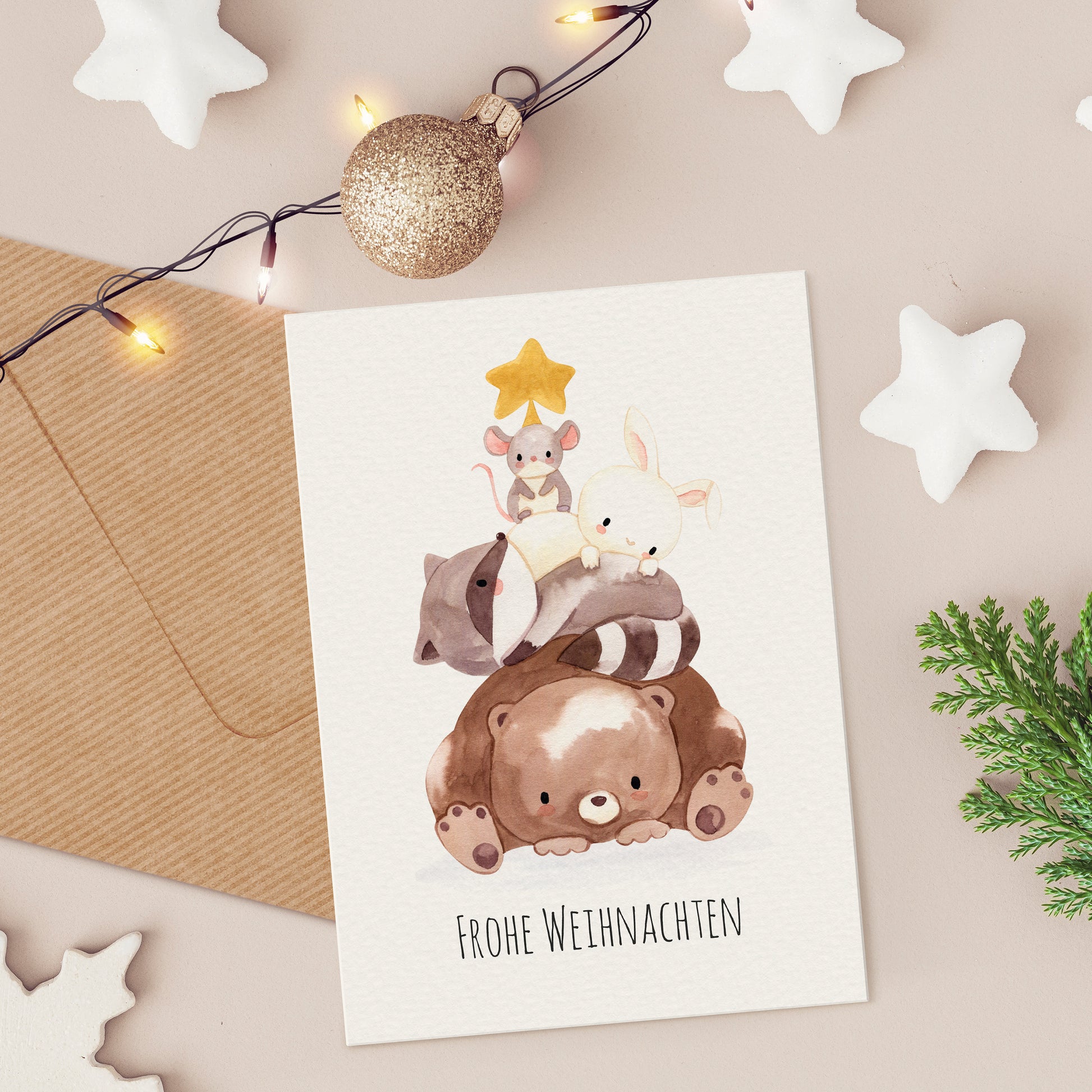 Weihnachtskarte Tierpyramide Frohe Weihnachten A6